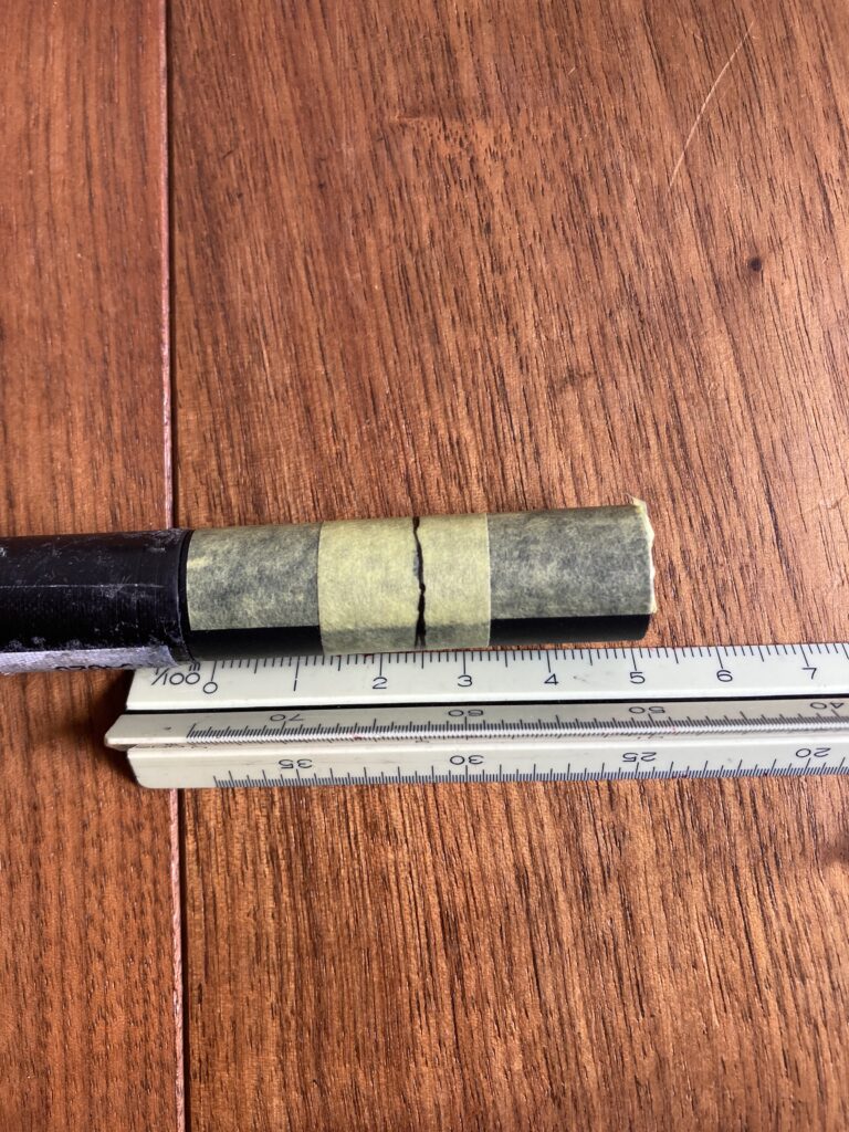 エクステンダーをシャフト内に入れた所、少しガタつきがあります。そこで両面テープを写真のように貼り付けて、保護紙剥がさないまま入れて様子をみます。