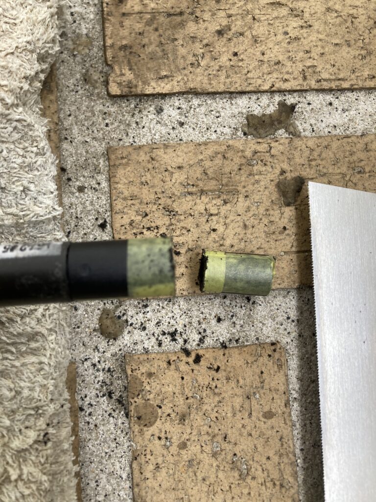 細目のノコギリでカット。この後で紙やすり120番でバリを取りました。