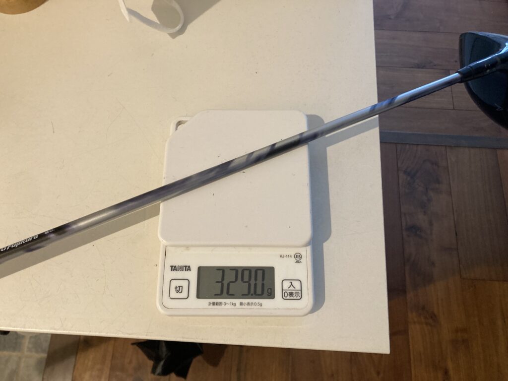 シャフトを44.5インチに短尺化し、ヘッドを取り付けて重量計測したら329gでした。短尺化前は327.5gだったので1.5g増えて完了です。乾いたてから練習してみますがヘッドが軽すぎる場合はソールに3-5gの鉛を貼ればシャフトカット前のバランスに戻せると思います。この加工でどの様に打球に変化が出るのか確認しますが、興味津々です。結果は後日報告しますね。