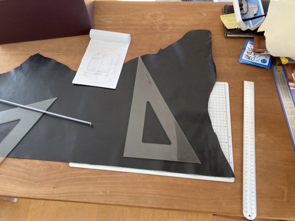 以前、ドライバー、5番ウッドなど作った時のスケッチを見ながら寸法調整し、革を裁断します。