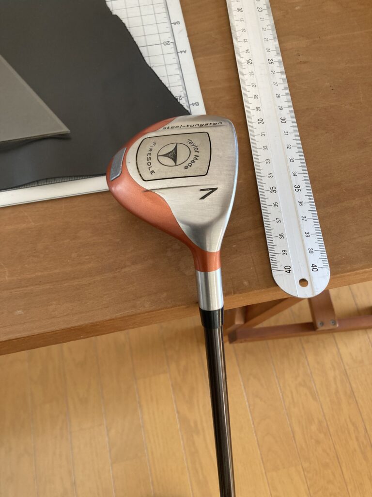 今回は1999年製のテーラーメードのファイヤーソールの7番ウッドです。誕生から26年になりますがこれは25年前に叔父さんが使わないというので頂いてきたクラブです。シャローフェースでバブルシャフト。最近のクラブと比べても何故かこのクラブの方が球が上がって打ちやすいので外せません。