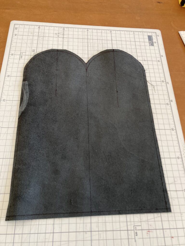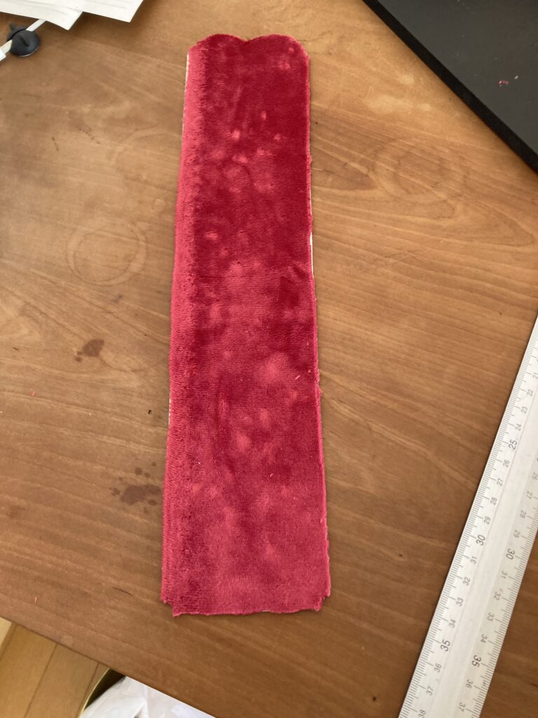 違う革(白)でアライメントスティックカバーを作ることにしました。大まかに裁断してから裏面にボア布を貼ります。
