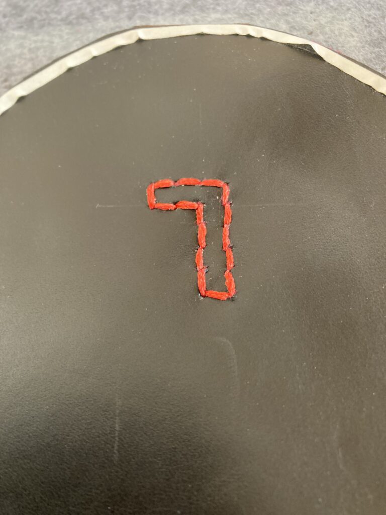 先行作業ではクラブの番号を簡単に刺繍するので穴あけします。