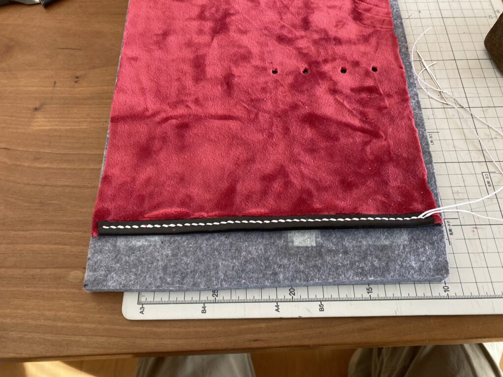 裏側に保護用のボア布を接着剤で貼り付けて、重石を乗せてしばし待つ。