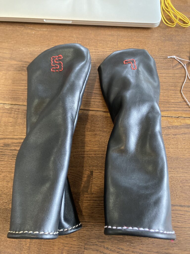 7番ウッド用のカバーが完成です。革の艶、皺、そして使っていくうちに変化する感じが好きです。雨は苦手ですが、革製のヘッドカバー育てていきましょう。