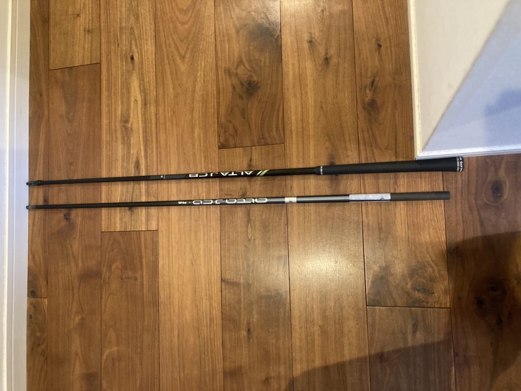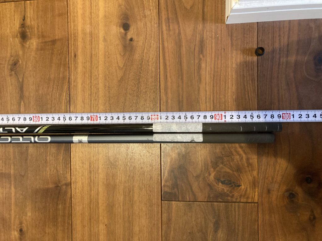 5番用のシャフトの長さを確認したところ、スリーブ、グリップのない状態で968mmです。計算上はこれが仕上がると丁度39.25インチになるはず。
