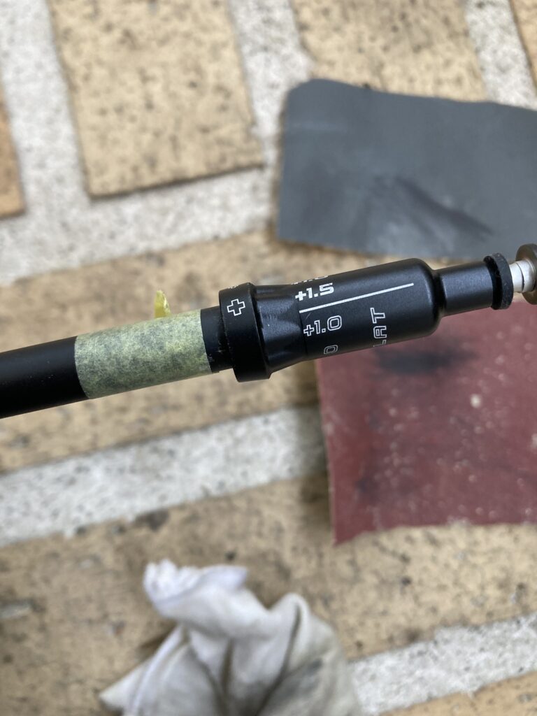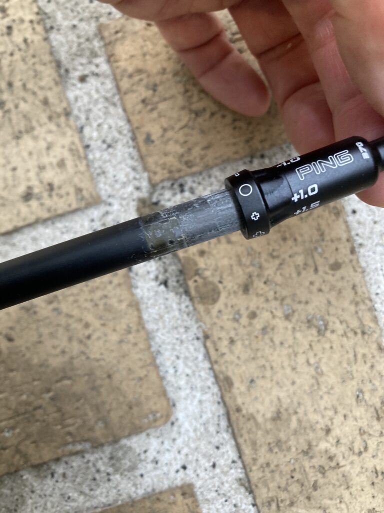 紙やすり120番で角を落とし、スリーブが入るか何度か確認しながら表面を薄く削っていくとスッと入る様になりました。ここでやらかしていますが、PINGのスリーブのソケットは柔らかい材質なので、外して先にセットするのではなく、スリーブと一緒についたままでセットしていかなければうまく入らない様です。