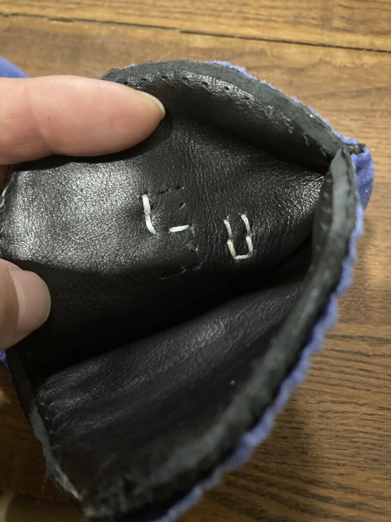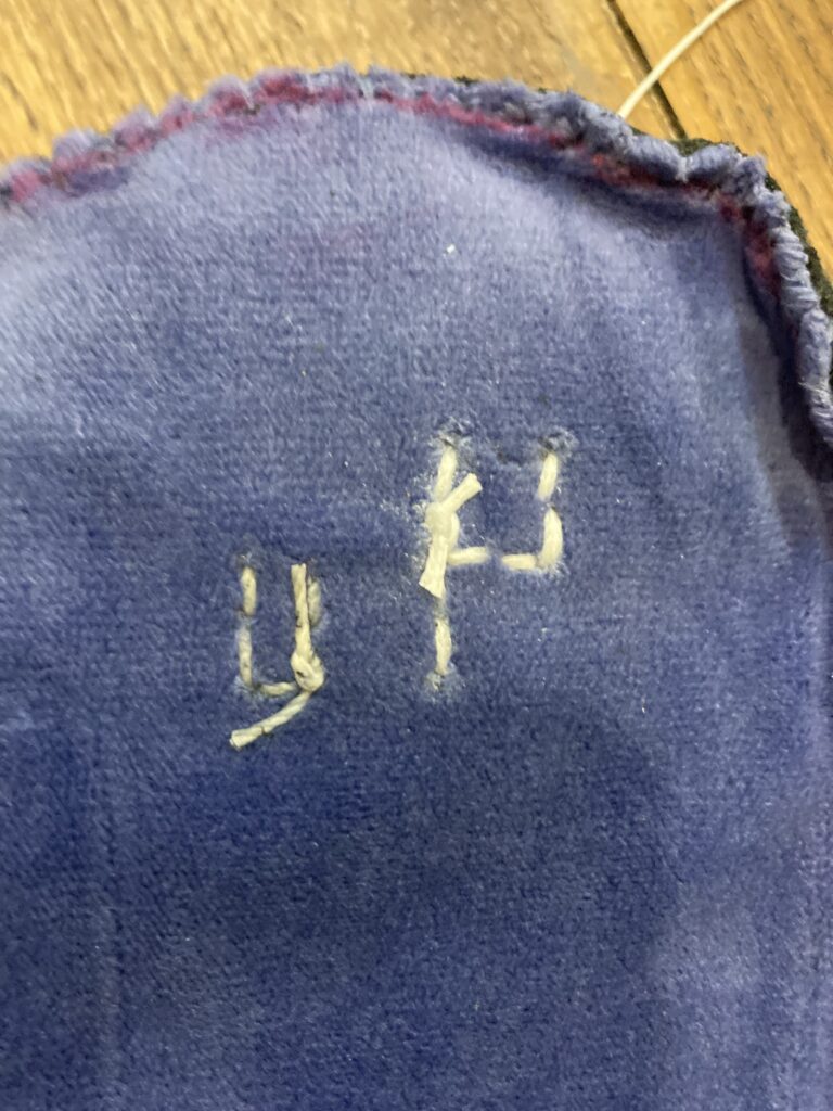 上部は細い両面テープで仮止めしてから縫い合わせているので上部だけ開けて、4にできるように穴を開けて、7になっている糸を外し新しく4で縫い直したところです。