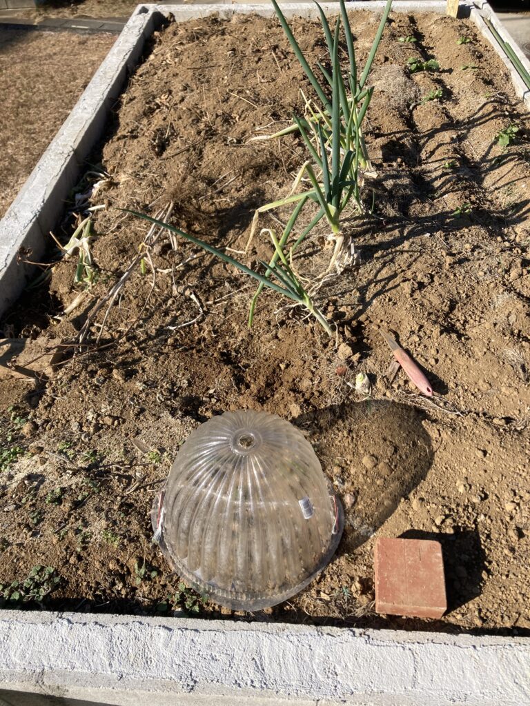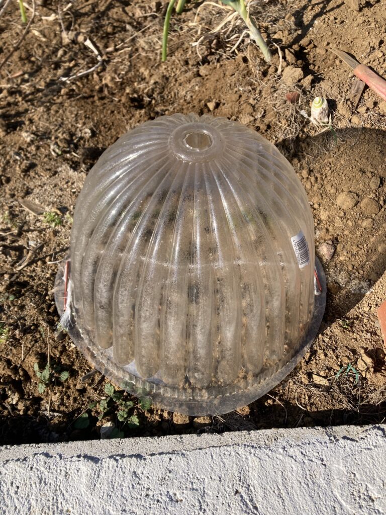 プラのドームをイタリアンパセリの苗の1部に被せましたが中を見てもあまり変化は見られませんでした。上の穴から指を入れるとほんのり暖かさを感じます。温室効果はあるようです。