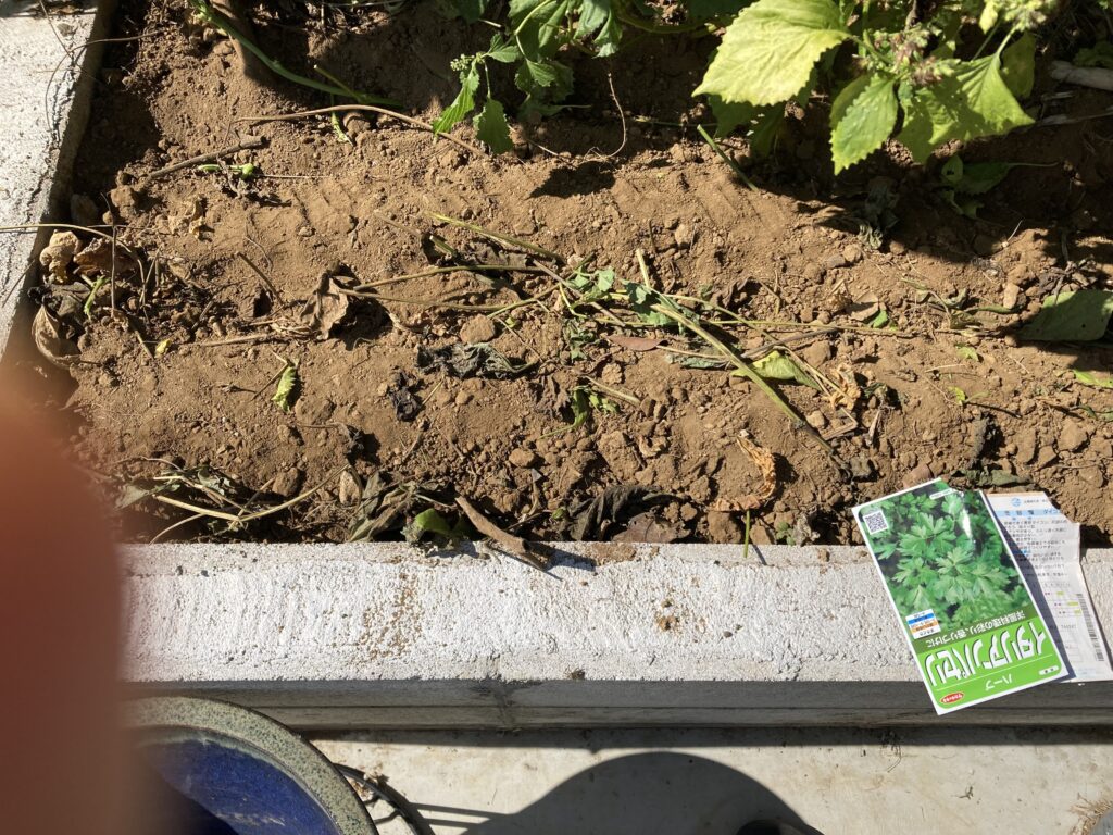 こちらはレイズドベッド1の北側になります。以前頂いた大根の種を蒔きましたが反応がないので再挑戦します。