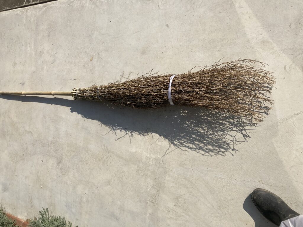 昨日カインズで買った398円の竹ボウキですが、隣に980円でプロ仕様と書かれた竹ボウキがありました。違いがわからずじっくりみたのですが、プロ仕様は先が揃っている感じ。これなら自分で切り揃えればプロ仕様になるじゃん。