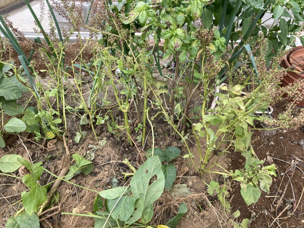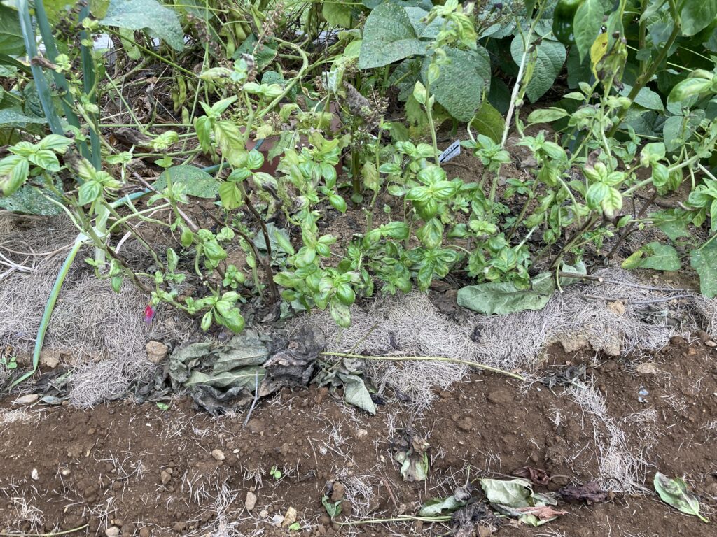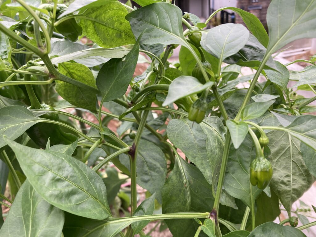 ピーマンは枯れてくる時期ですが、成長するのが遅れた分、沢山の小さな実をつけています。いつまで成長してくれるのかわかりませんが収穫を楽しみに見守ります。