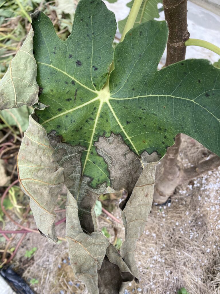 黄色くなって枯れると思っていましたが葉っぱの先が乾燥して丸まってくる感じです。黒い点々は病原菌なのか?