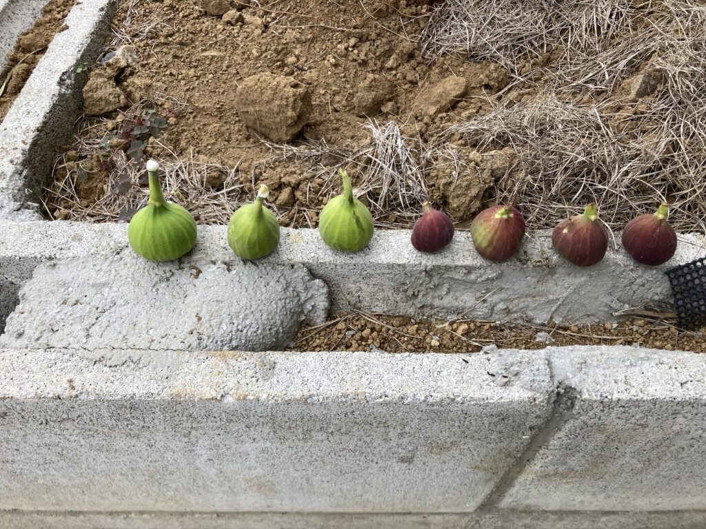 希望を持って10個の実を残しまし、最初の2個は美味しくいただきましたが、それ以降は熟す様子がなく、7個はなんとなく並べています。時間と共に色が変わるんですね。