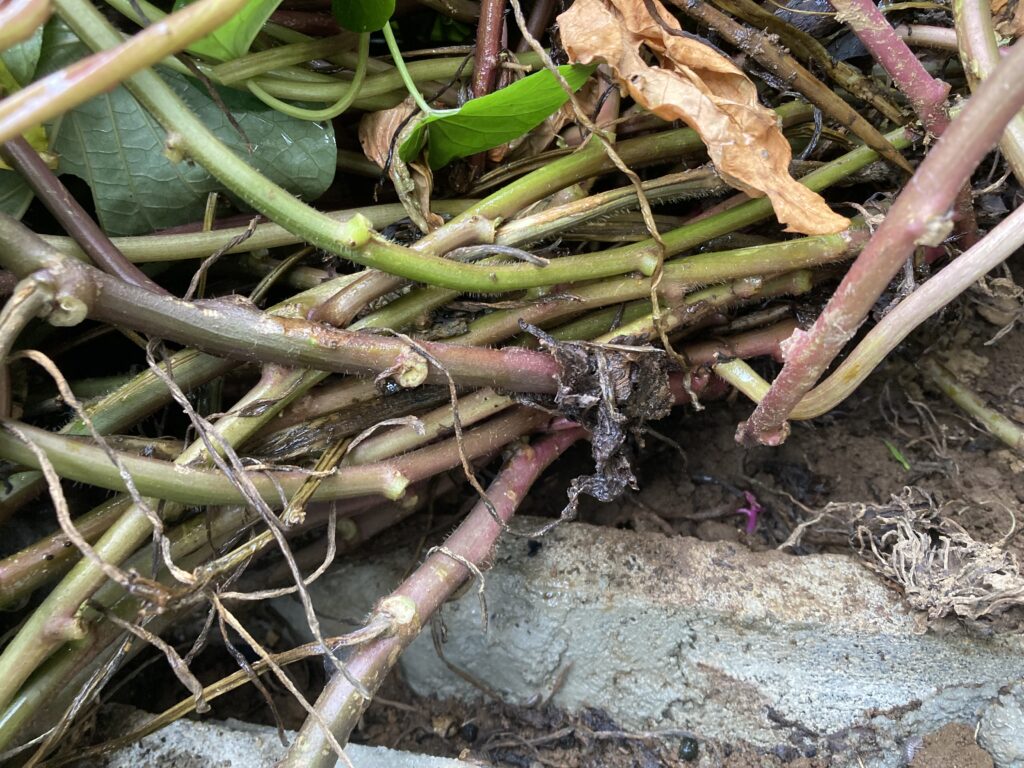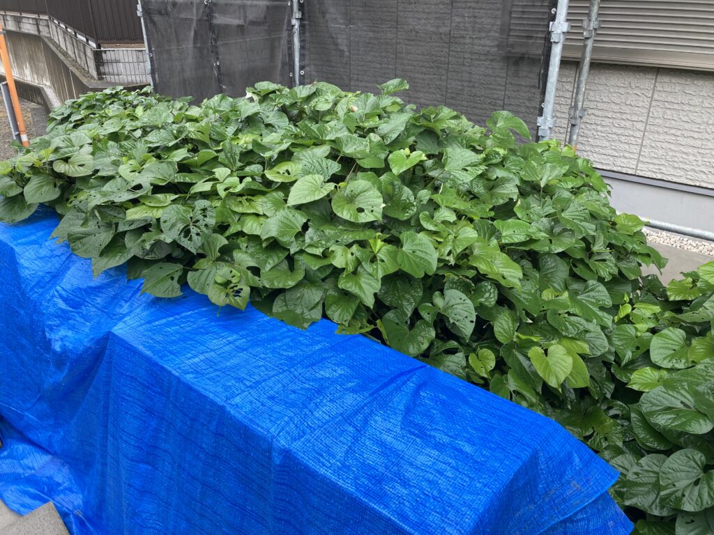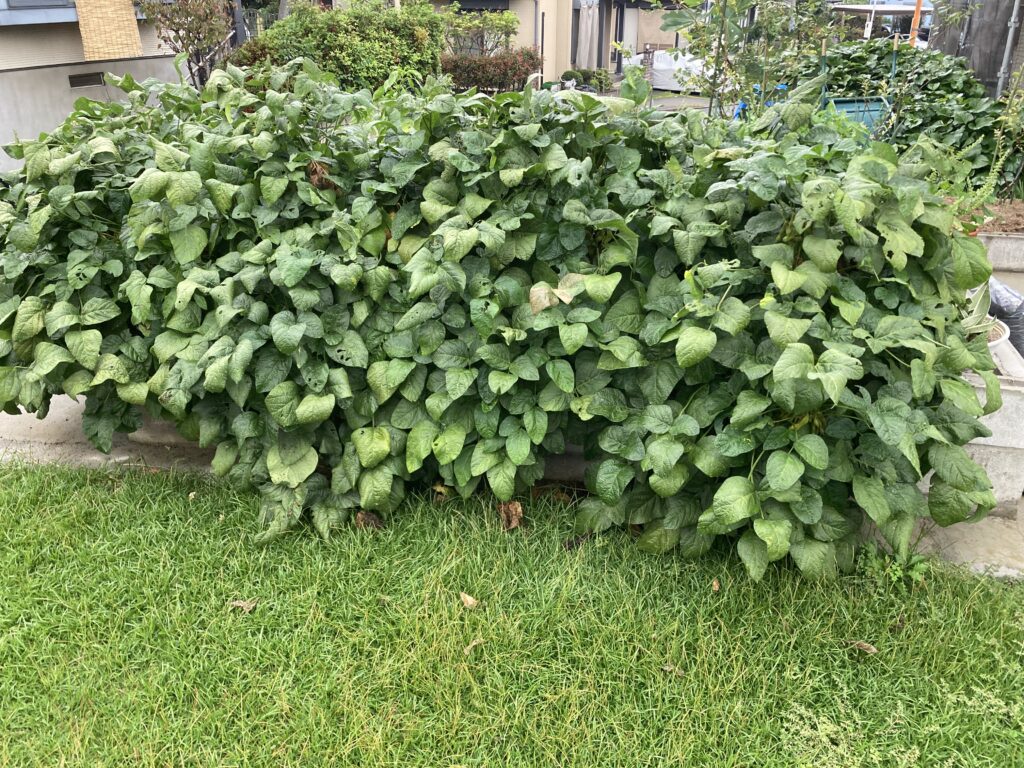 サツマイモですが10月4日で植え付けてから130日です。YouTubeでは葉っぱが少し黄色くなると掘るサインとのことでしたが、未だ青々としているのでやはり来週以降ですね。