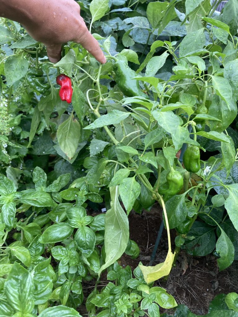 ピーマン1号は相変わらず小ぶりな実をつけ、赤くなるようです。収穫してみます。