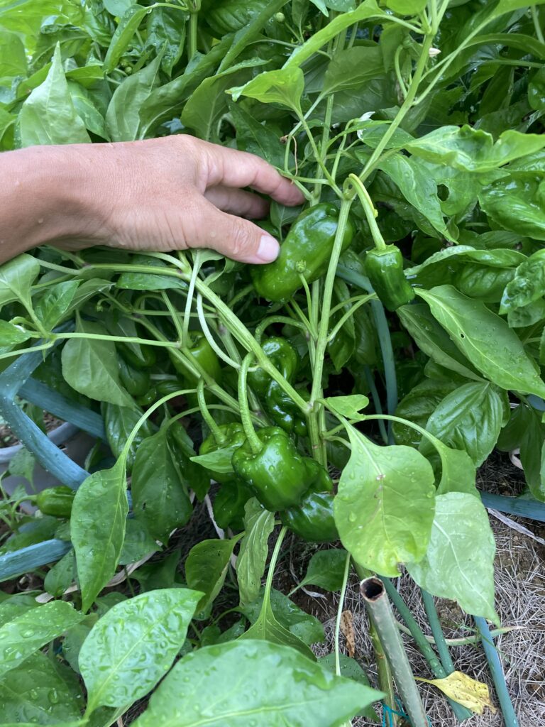 ピーマン3株の方は順調に育っており、普通サイズの実が数個あるので収穫します。