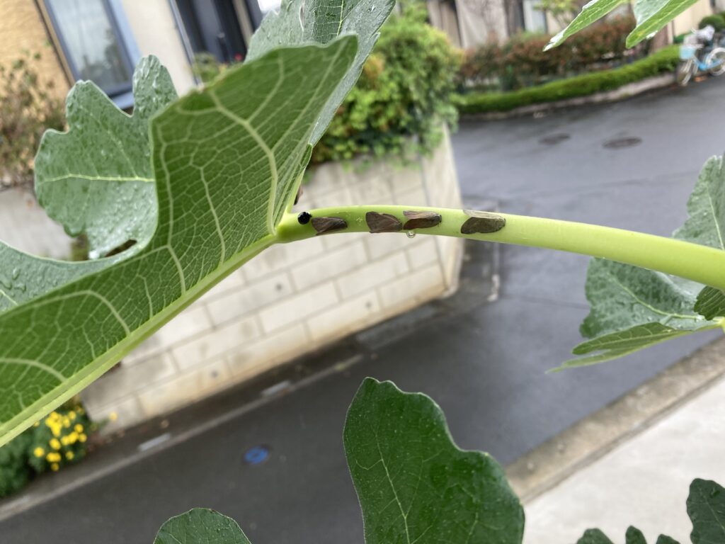 上部の茎や葉の裏には、コイツらが沢山います。樹液を吸っているとのこと。