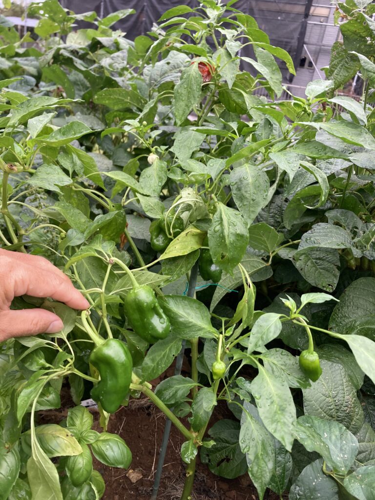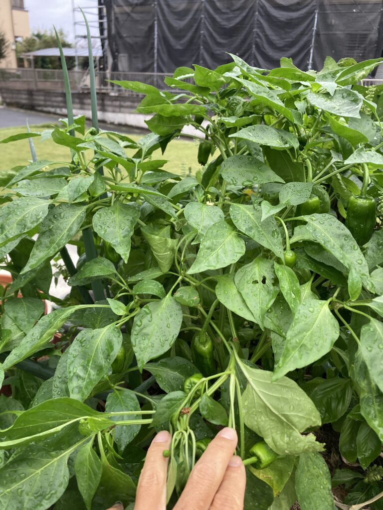 ピーマン3株は沢山実をつけています。順番に収穫して食べています。