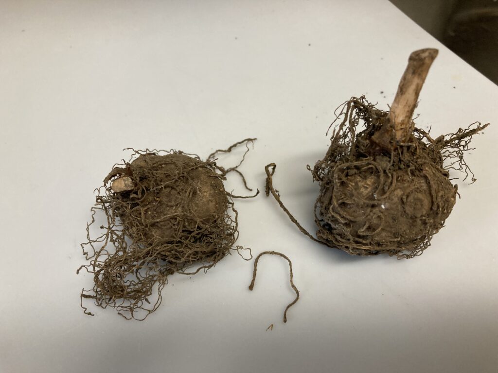 まだ葉っぱは青々としてますが、一時期に比べて元気がなくなった感じがします。そろそろ葉っぱも枯れてくるかな。明日、天気が良ければ少し掘ってみます。