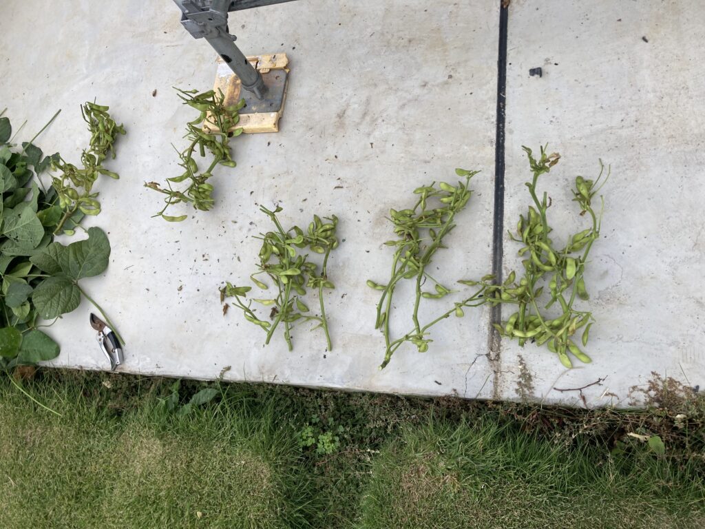 鞘に入った実は段々と成長しているようです。1ヶ月前くらいから試しに収穫をして茹でて食べていますが、徐々に味が濃くなっている感じがします。豆を包む薄い皮も少し黒みを帯びてきました。