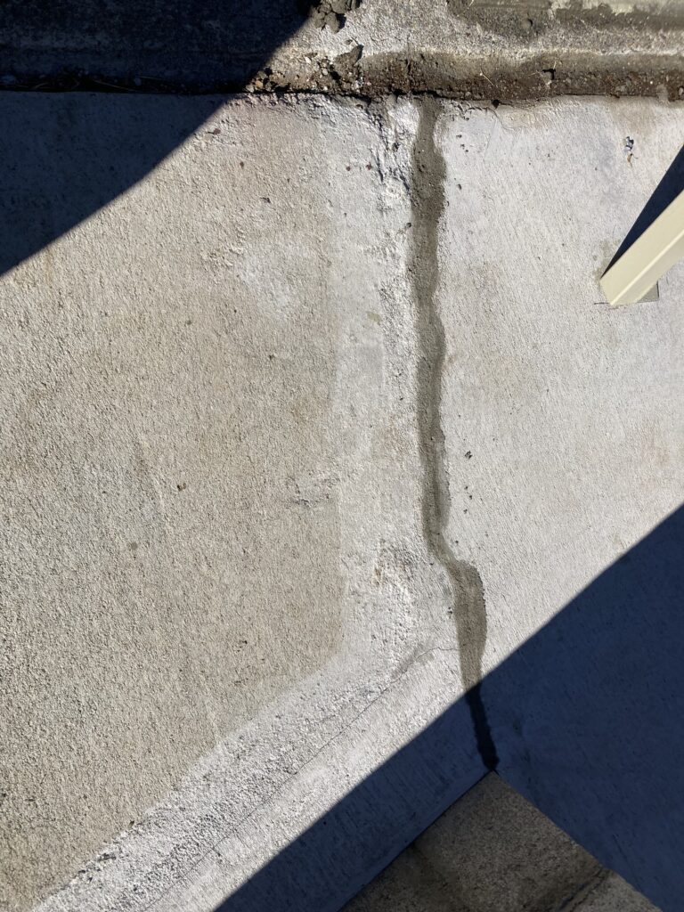 少量しか作りませんでしたが、余った無収縮モルタルを土間コンのひび割れたところに適当に流し込んでみます。