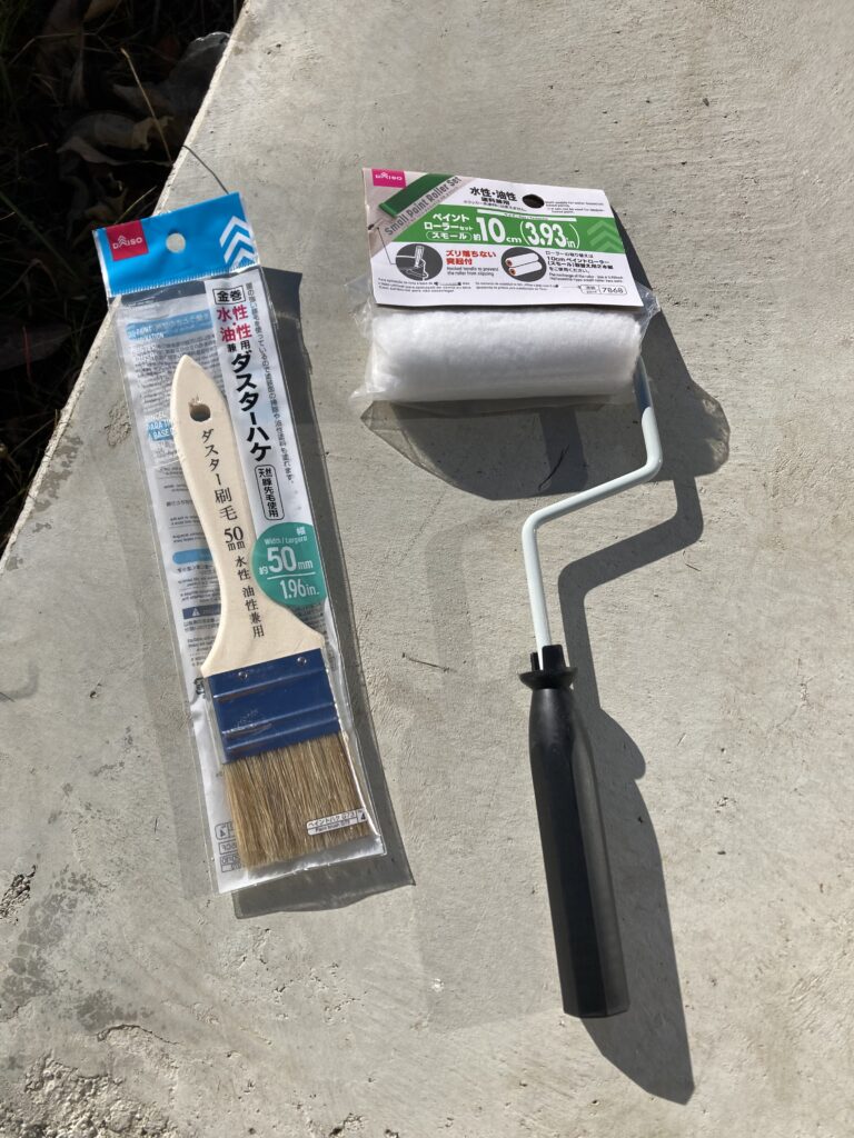 良さそうな刷毛がなかったので、ダイソーで小型のローラー、予備、刷毛を買ってきました。