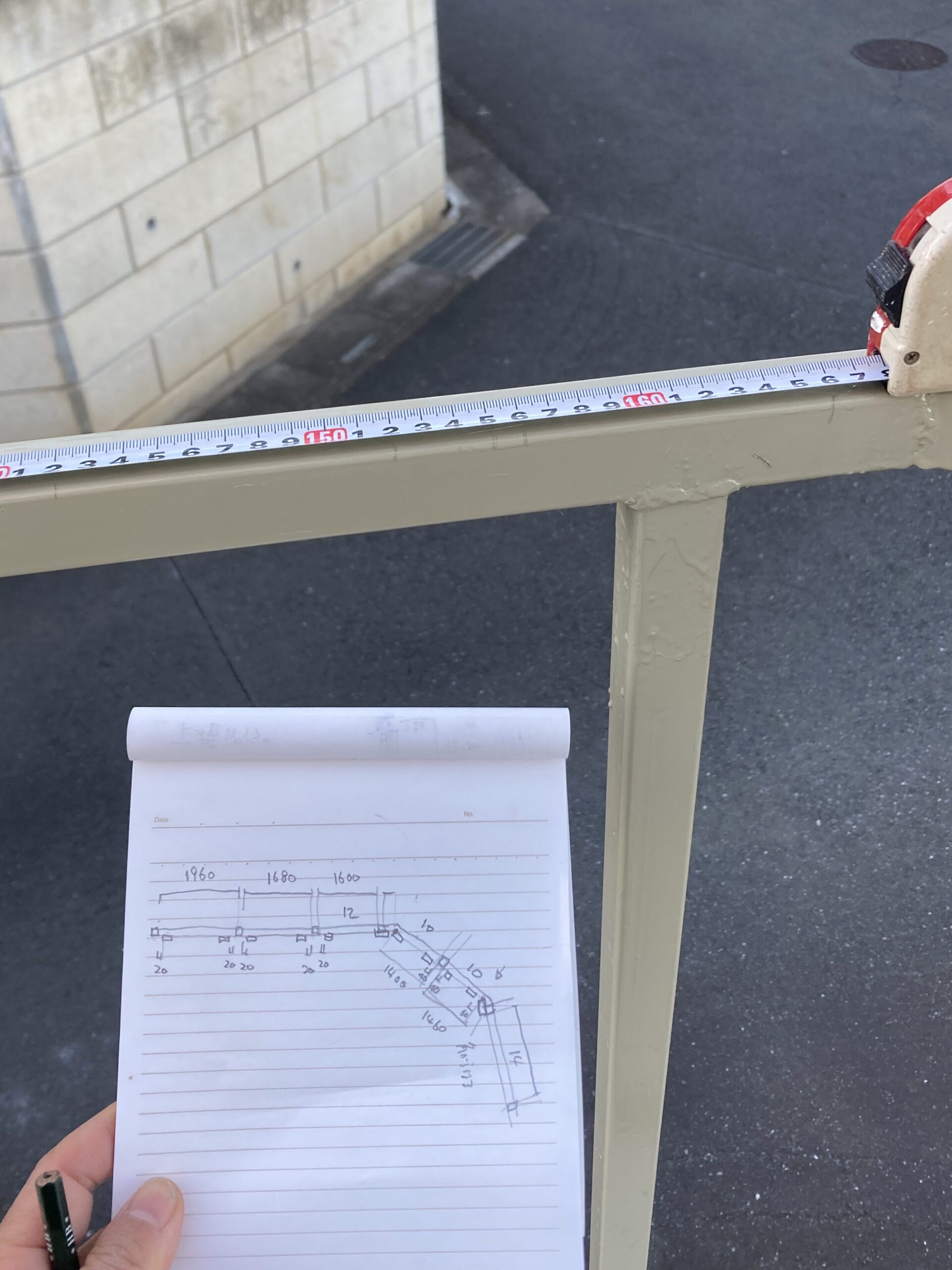 北風が吹きっぱなしで体温が奪われます。早くこの角パイプに風よけの板を取り付けないといけません。柱は鉄の角パイプで耐久性は十分で板材は12㎜と薄めでおまけに檜材は柔らかい。油性の保護塗料を塗ったとしても数年で劣化するのでお手入れが必要になると思います。普通の塀は、板は外側から貼っていますが、我が家では内側から板材を貼ることにしました。柱間の寸法もマチマチなので割り付けの寸法を考えています。できれば角パイプも板の隙間から見えて家側からペンキが塗れる割り付けが理想です。寒いので今日はここまで。
