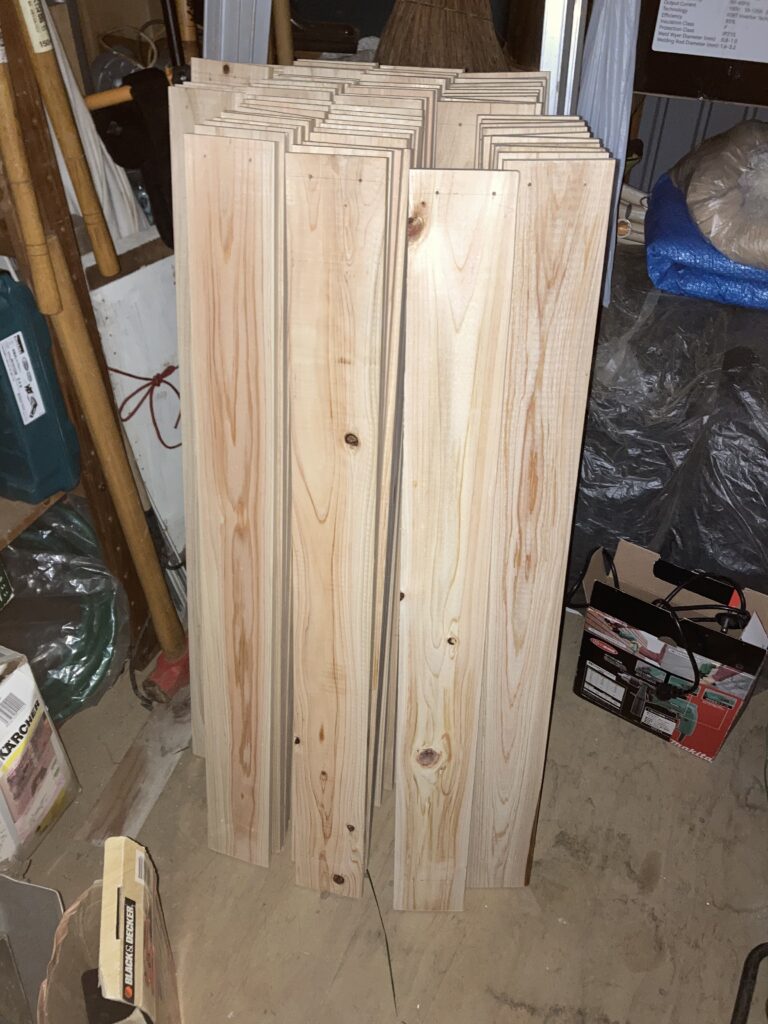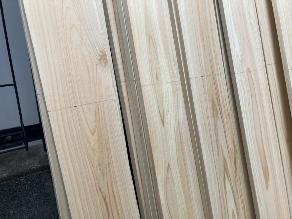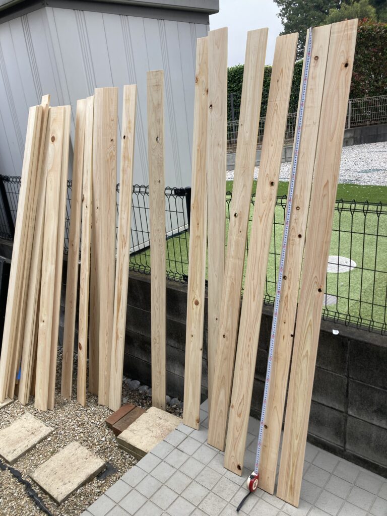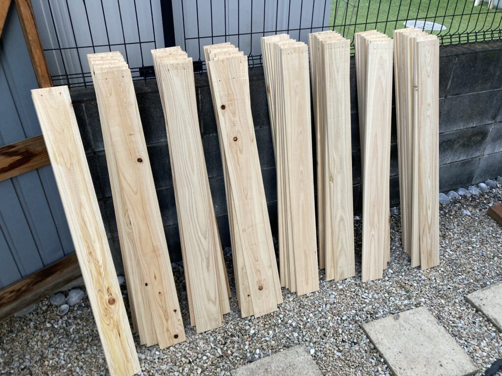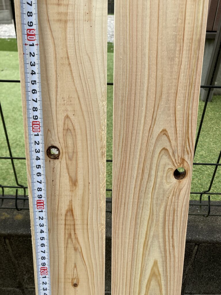 節で穴が開いていたり、木の端っこを使っているので角に皮が付いていたりする材料も数本ありました。難ありの材料は目立たない部分に使うことになると思います。
