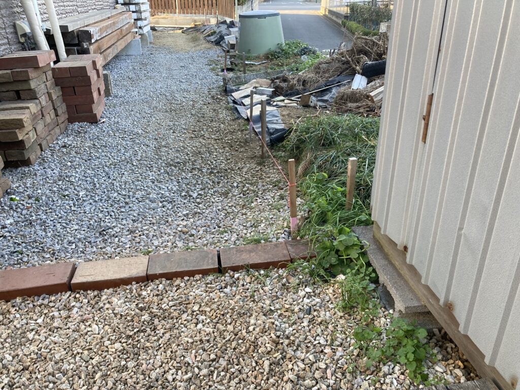 現在の倉庫より200㎜前に出たとした場合の糸を貼ってみました。倉庫を拡大して、土置き場兼残渣置き場、北側の植物エリア(果樹と野菜)。あれこれ仕上がりを想像していますが倉庫の中を片付けて側面をバラさないと次に進めません。年内はこの周辺の整理くらいになりそうです。