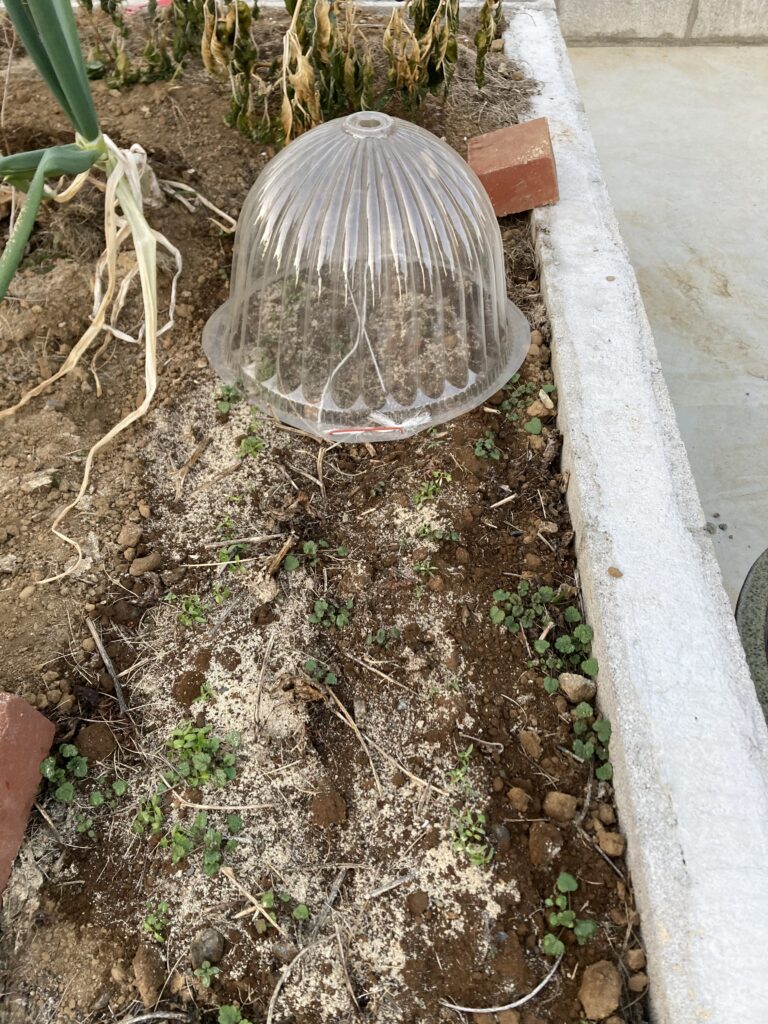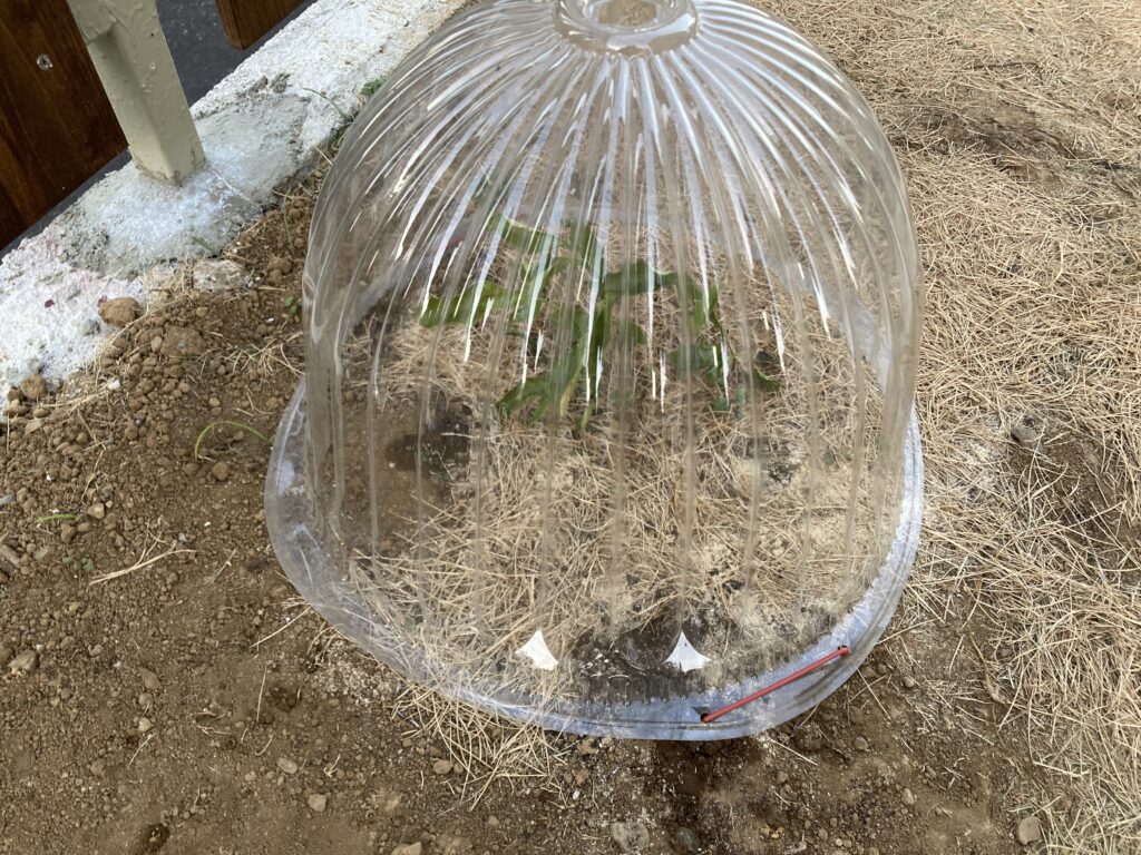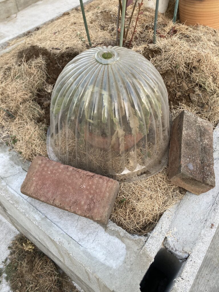 成長の止まったイタリアンパセリの一部にプラスチックでできたカバーをかけてみることにしました。倉庫を片付けていたら5個くらい出てきたので早速設置して様子を見てみます。