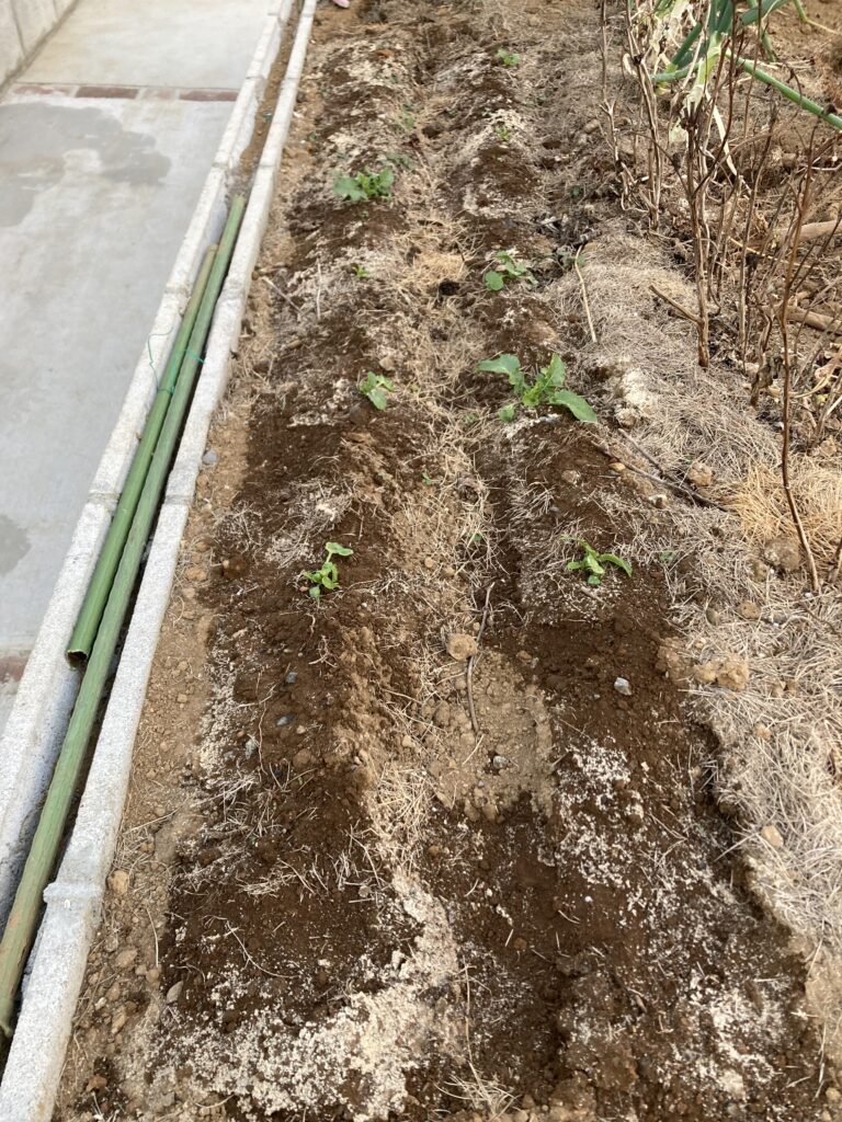こちらは大根です。少しづつ葉っぱが大きくなってきました。冬の間に食べられるサイズになるのかどうか観察します。