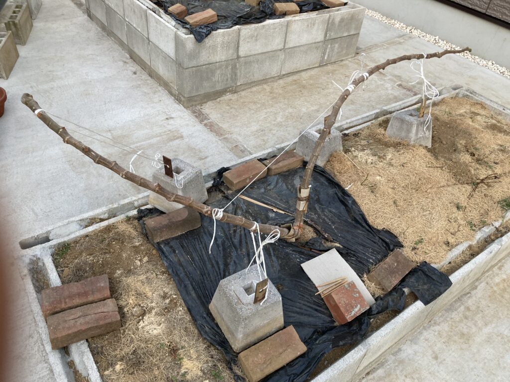 こちらは地植えの柑橘系はるかの苗。風が強く当たっていたので成長もしていません。カバーで乗り切れるのか見ていきましょう。