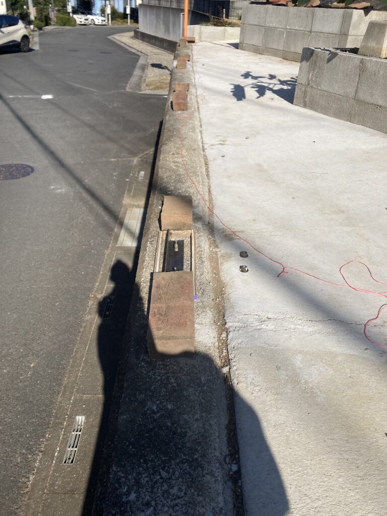 6番は擁壁の角で面取りがしてあるため型枠が四角いままでは下が見えてしまうので、写真の左上に小さな三角形のパーツを貼り足しています。