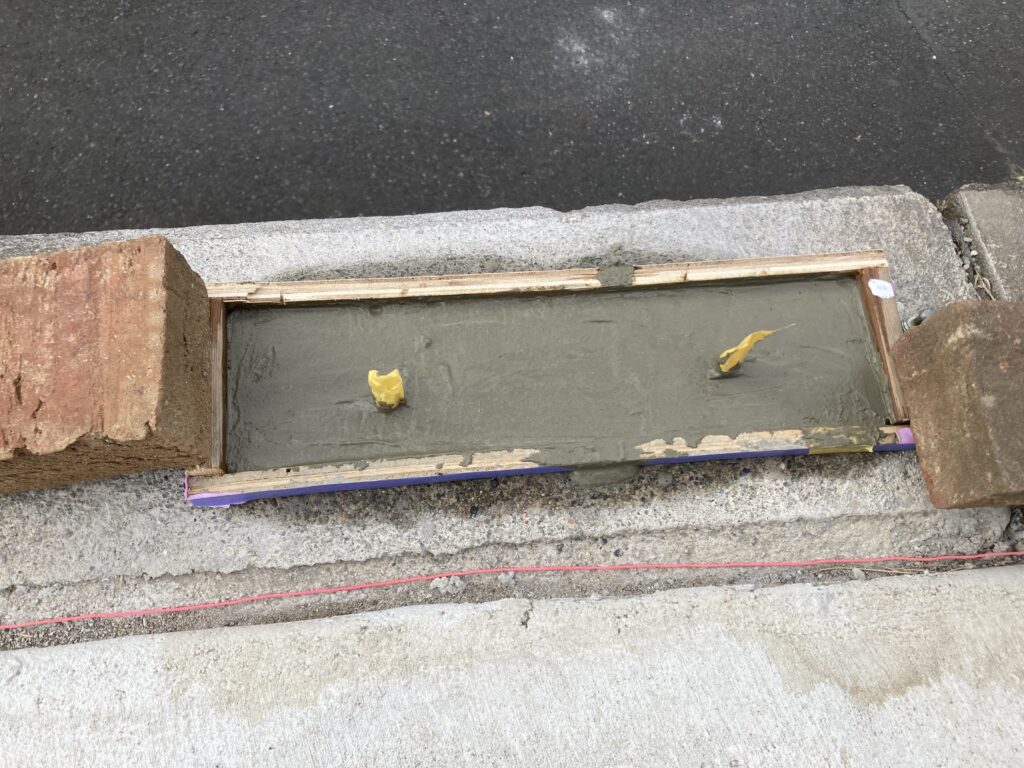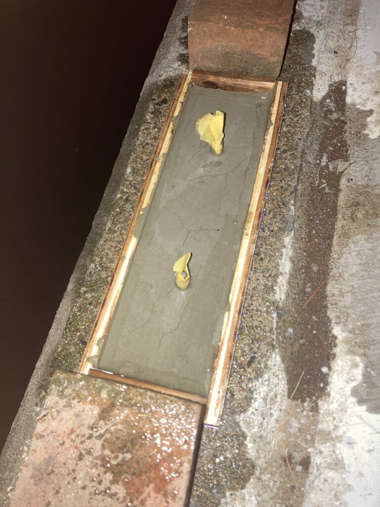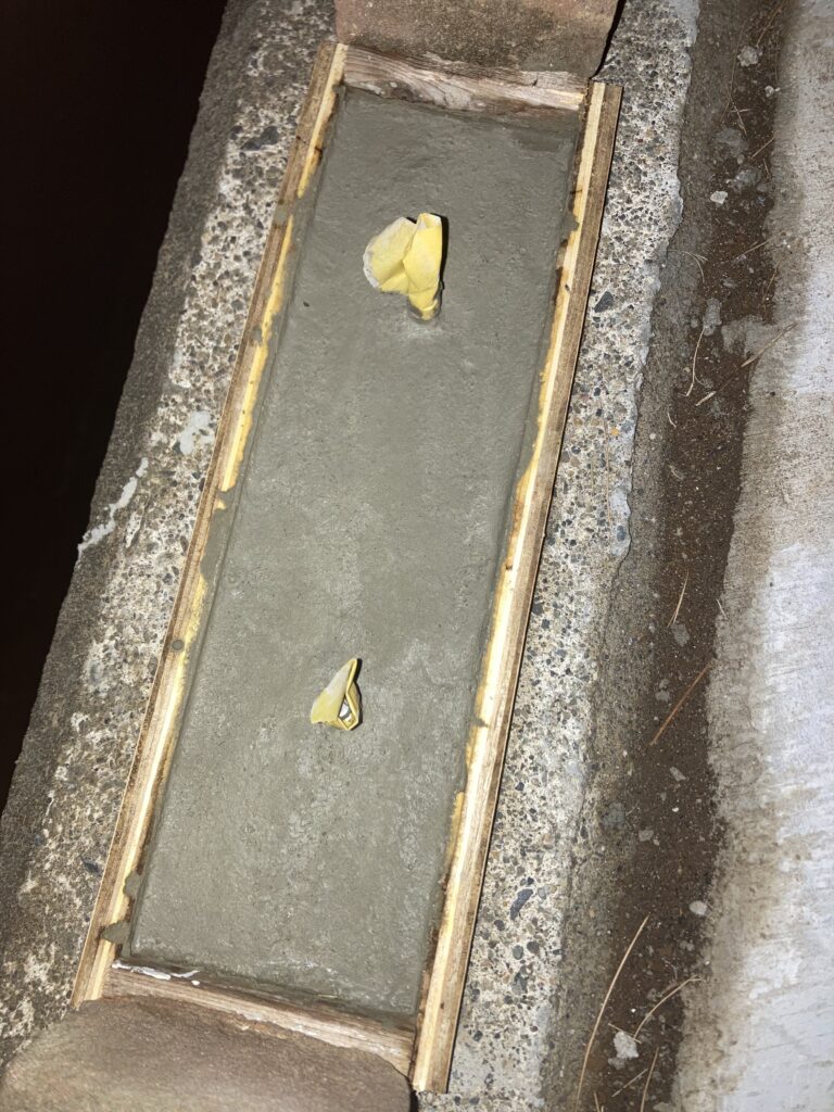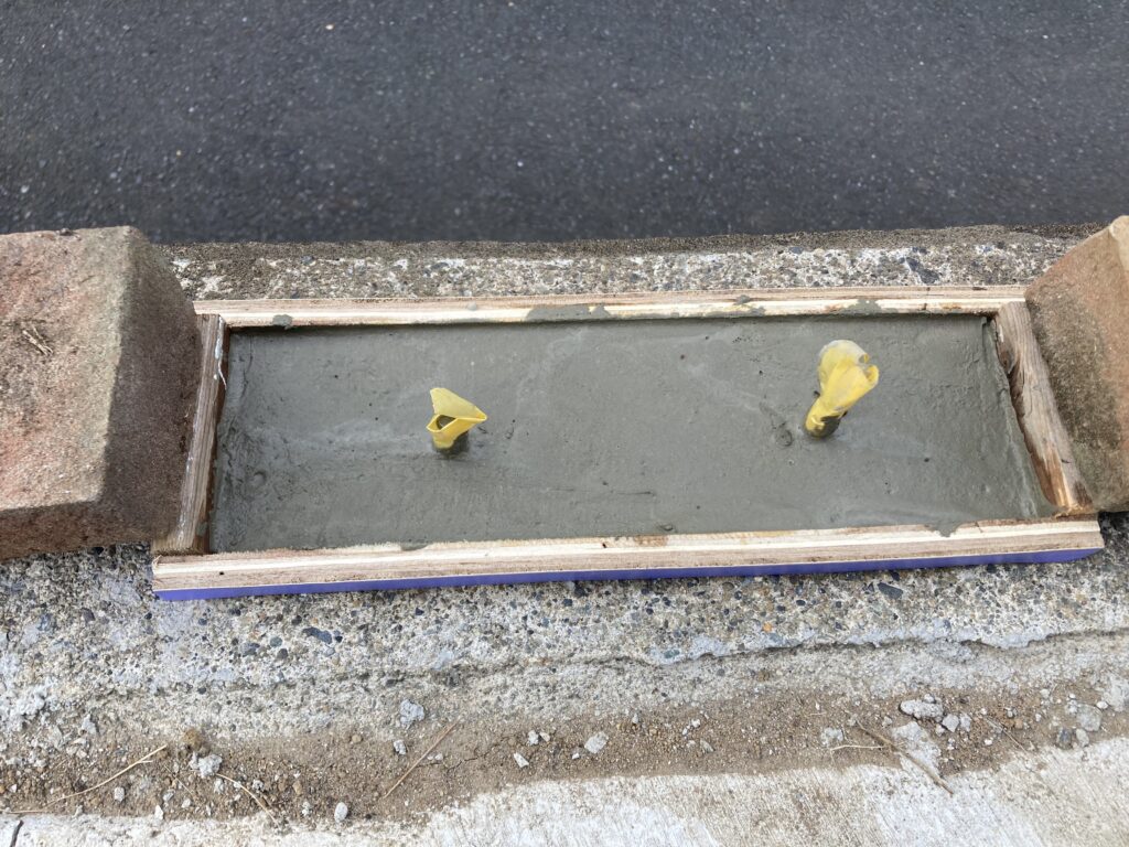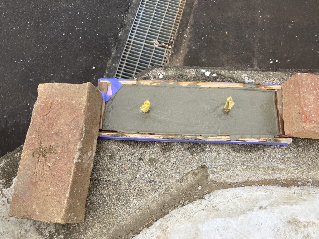 3番も同様に。ここは用意していたLアングルが少し長いので型枠も大きく、かえってコテが動かしやすかった。