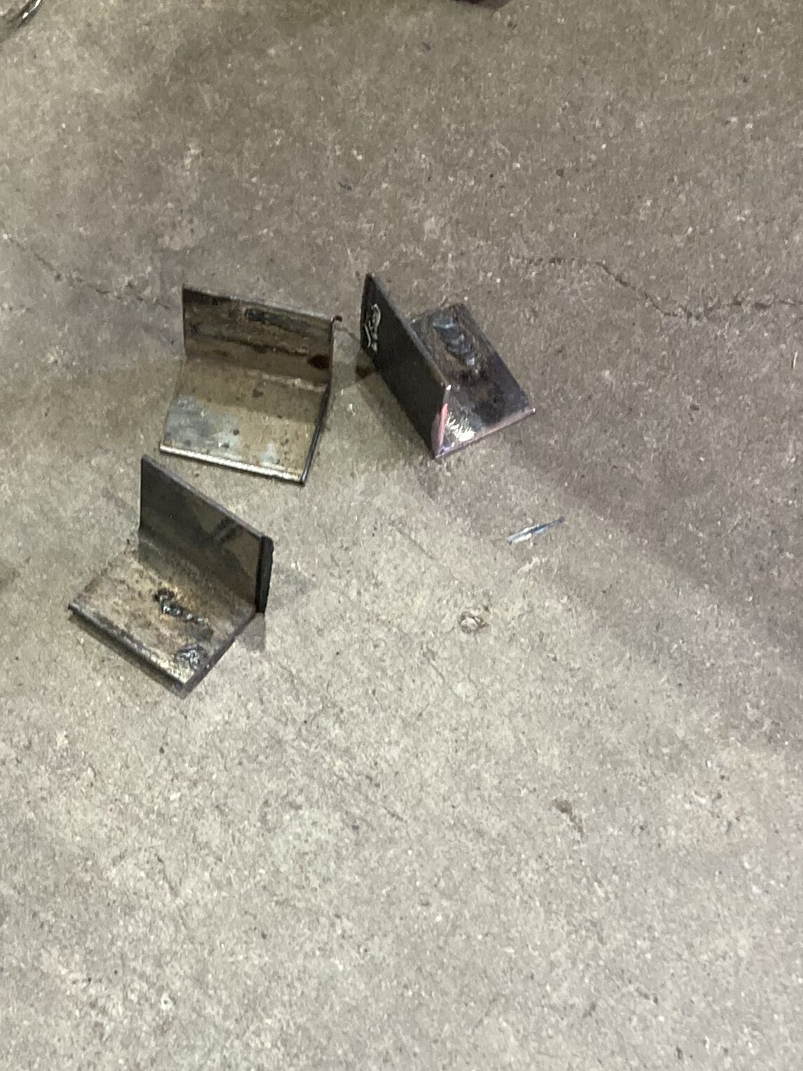 こちらは以前購入したLアングルを振れ止めをつける場合のベースプレート用に幅50㎜で3個カットしました。購入時のレシートを持っていけば道具を使わせてもらえます。使うことになったらアンカーのサイズを決めて穴あけします。