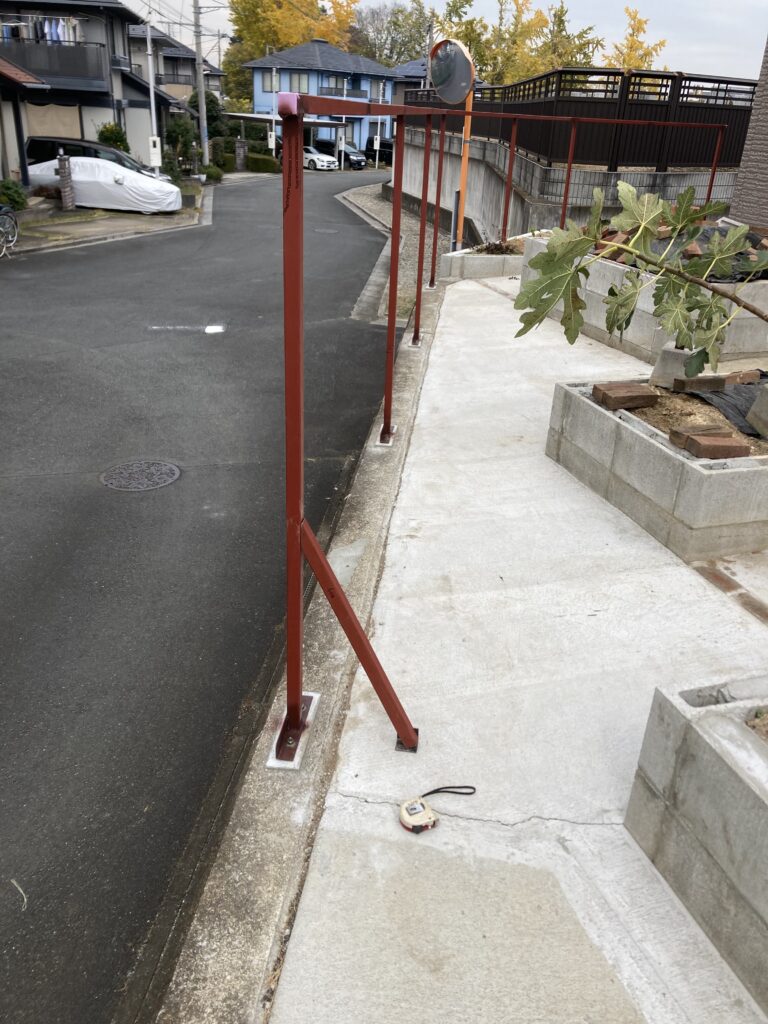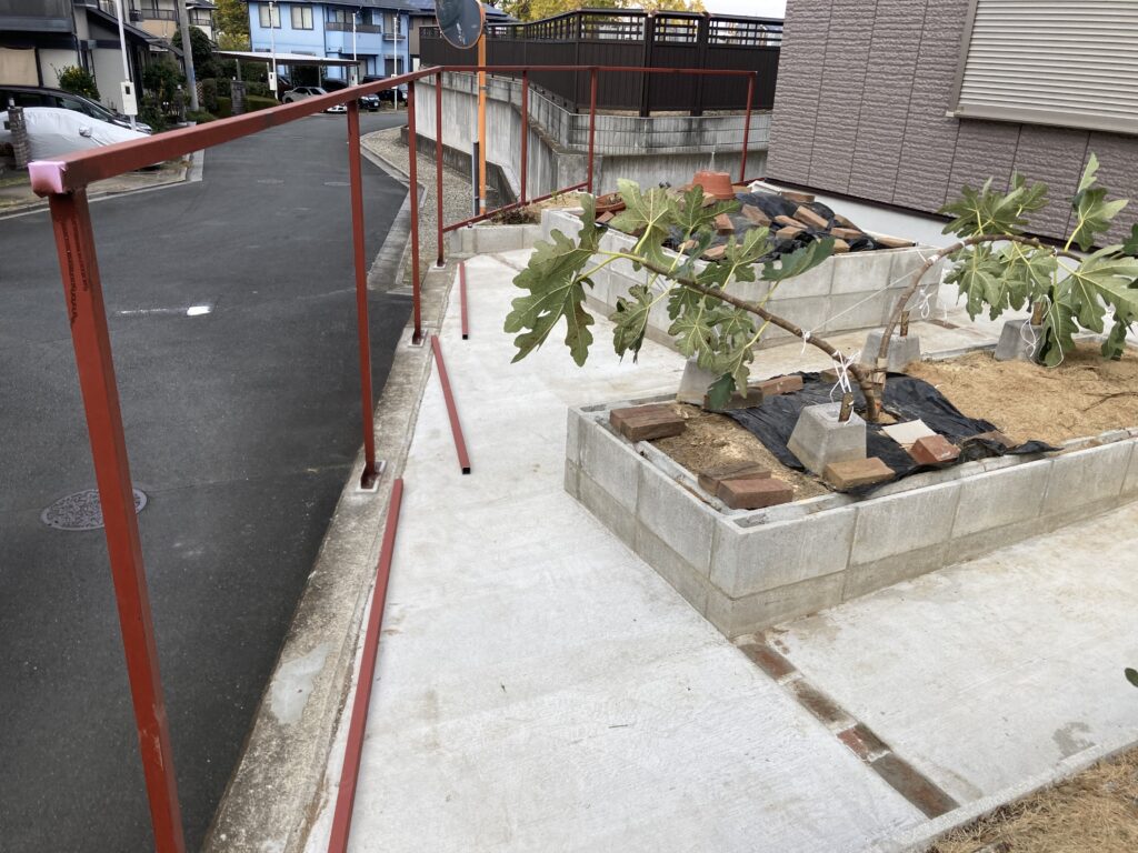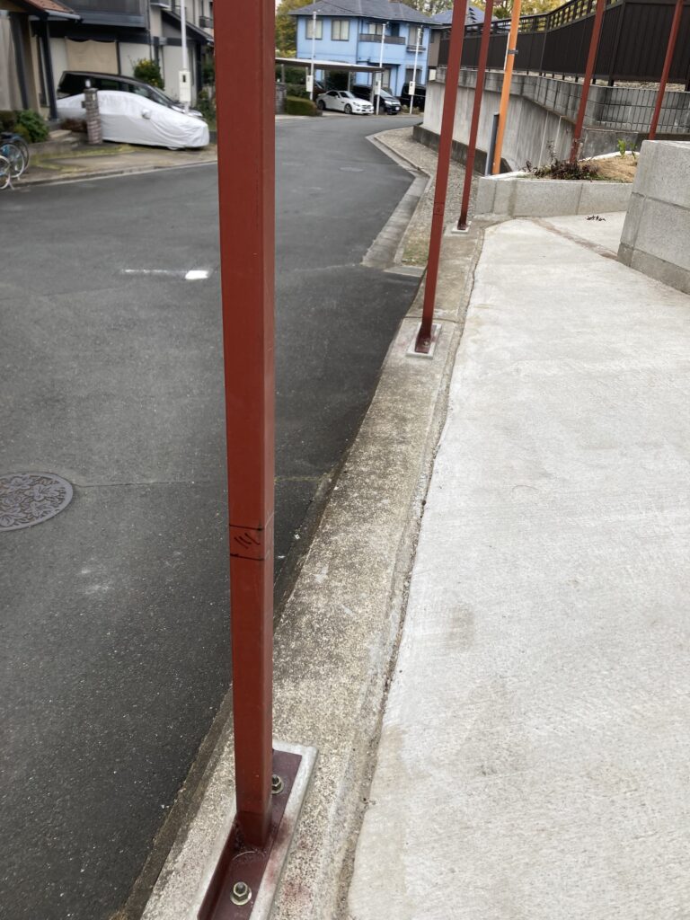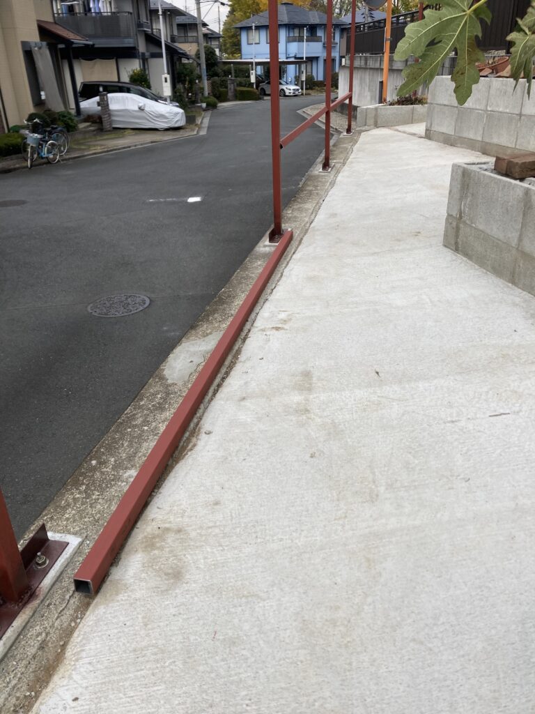 遠目に見るとこんな感じで足を引っ掛けそうです。土間コンも擁壁側の暑さは60㎜前後だと思うので小さなアンカーにしないと割れそうです。