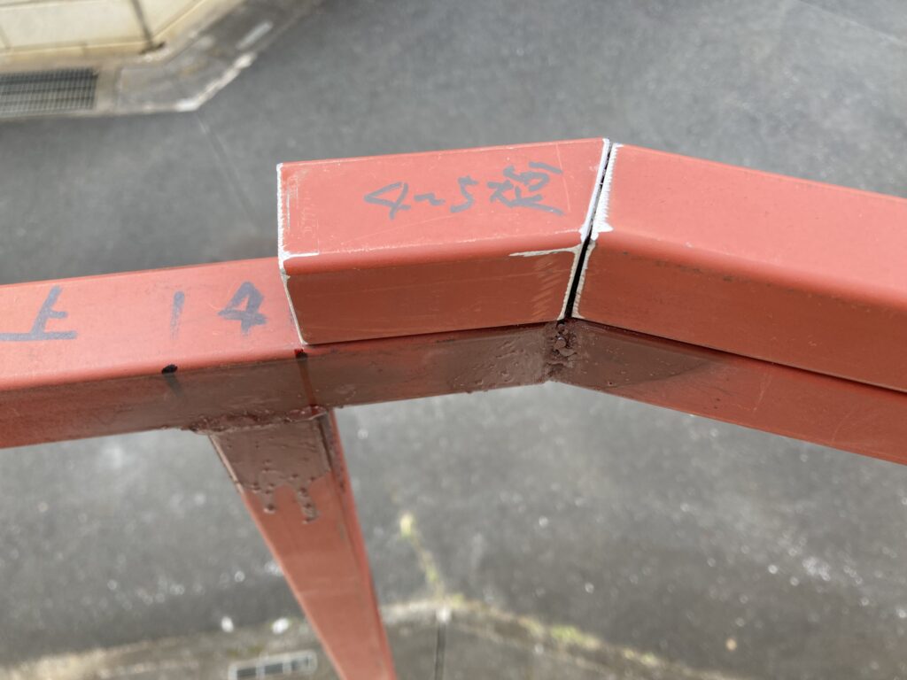 同じようにやったのに左の長材の長さが1㎜以上長いです。何度も削り直してもまだ少し長い。ここは最後に溶接することにしてその時に調整します。