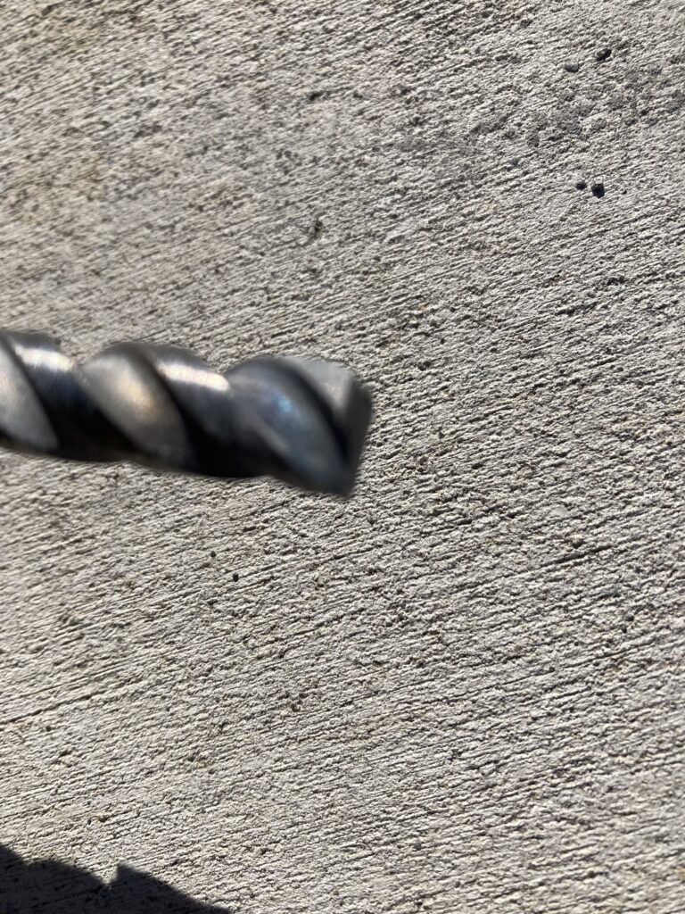 と、作業を進めていたら、10㎜ほど掘れたところで掘れなくなったのでドリルを抜いてみるとドリルの刃の先端が真っ平らに摩耗しています。なんじゃこりゃ!初めて見る光景。ここには鉄筋は入れていませんので、石がある可能性はありますが普通は石ならドリルが勝って穴が開くはず。この刃ではこれ以上穴が開きませんので刃は買い直すとして、今日の作業の段取りを変えるしかありません。