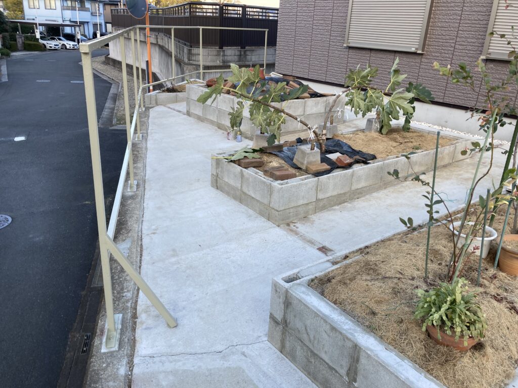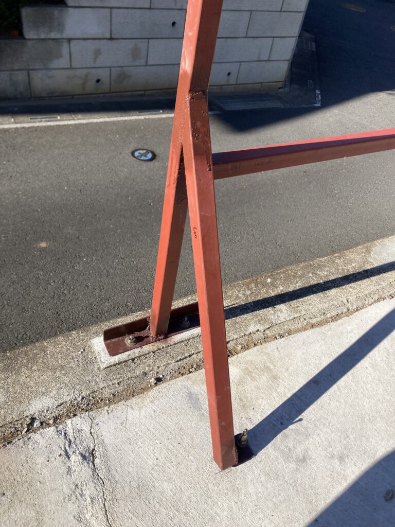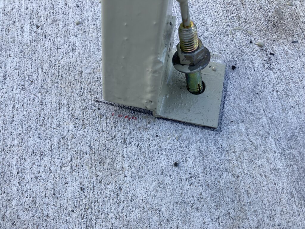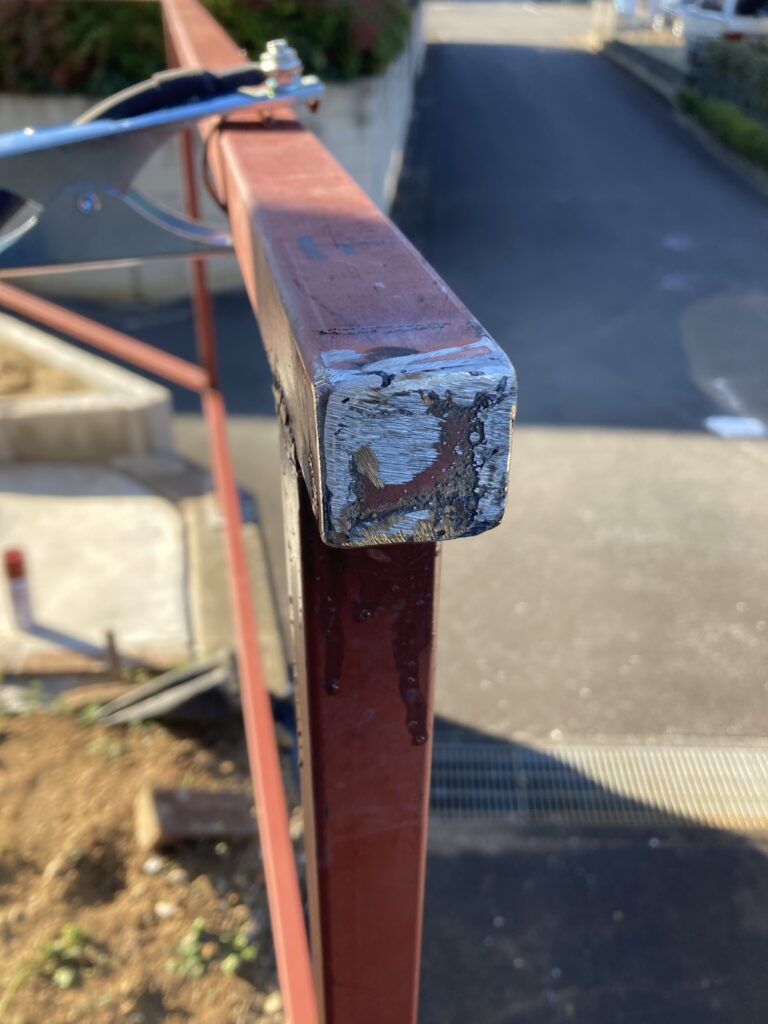 モルタルの上面はサビ対策として角パイプが高くなるように少し傾斜をつけました。ベースプレートの下に無収縮モルタル的なものを注入したいのですが、そろそろ暗くなるので今日の作業はこのくらいにします。