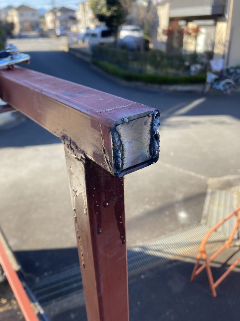 こんな感じで溶接後に削りました。厚めに塗装すれば仕上がりも気にならないはず。