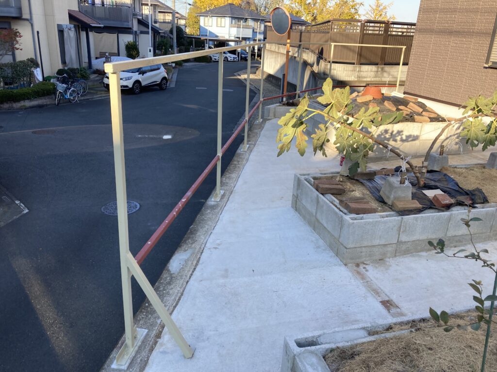 ①北風よけの塀作り、振れ止め、角パイプ塗装