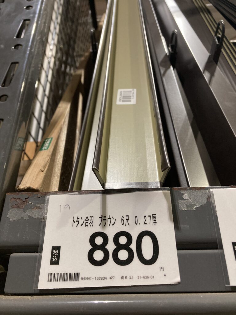 前回の作業で塀は完成しましたが、板材上部の小口から雨の染み込みによる劣化が心配なので笠木の役割をする材料を探しにカインズに来ました。これは使う目的が違うかもしれませんが角パイプと板材の厚さ分を上から被せるには絶好の断面をしています。ただ、つなぎ目の処理をどうするのか分かりませんが私がやるなら変性シリコンでコーキングかな。