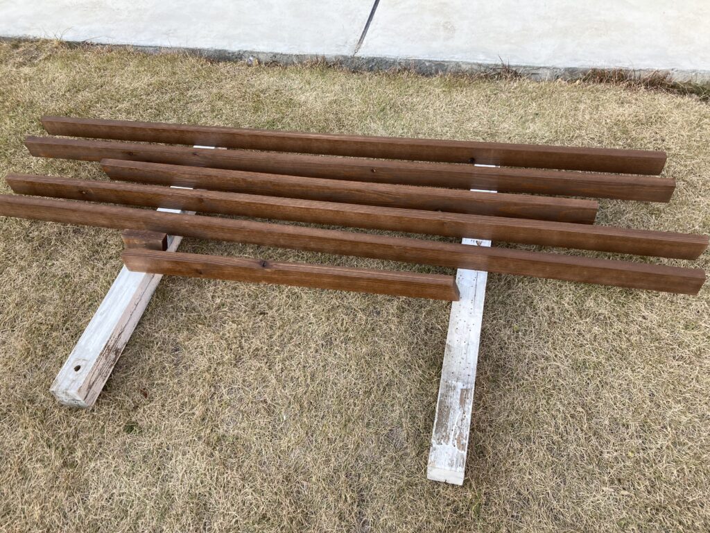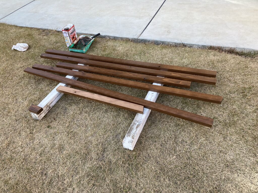 1回目の塗り初めが2時過ぎだったので、生乾きのうちに急ぎ2度塗りししばらく放置してから夕方に取り込みます。明日、天気が良ければ穴あけしてから取り付けます。