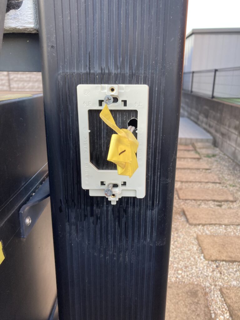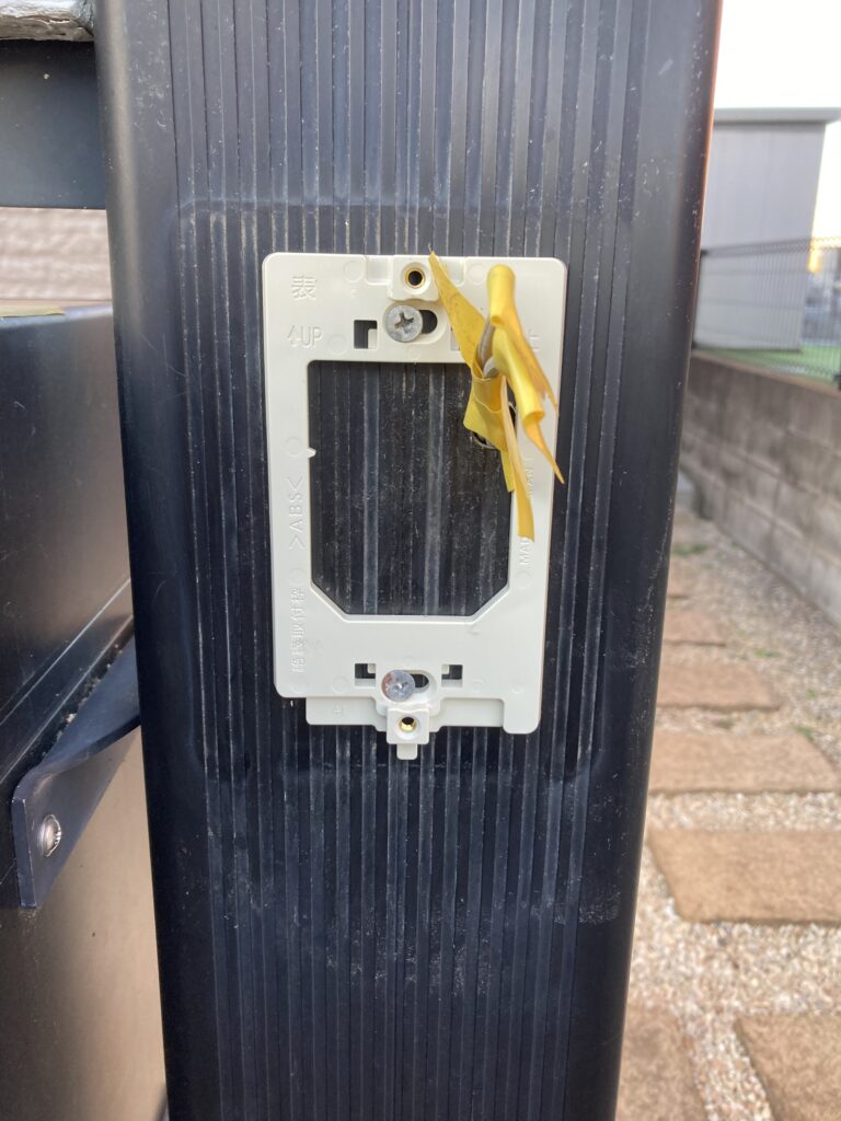 割と太めの寄り線が2本出ていますが、これが信号線ですね。前のインターホンの取り付けベースなど外して掃除してから押しボタンの取り付け下地の場所を確認します。