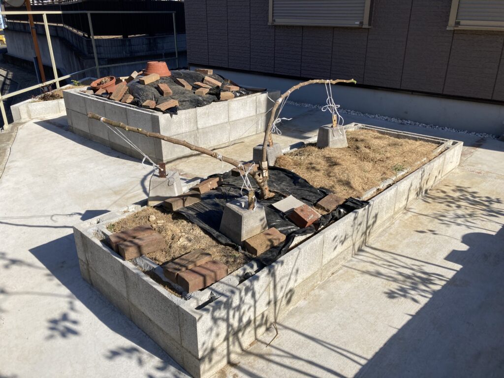 ようやく葉っぱが枯れてきたので、全部取ってしまいました。1文字の高さがまだ高いのですが根元が裂けないように時間かけて曲げていきます。写真の左側は曲線に誘引しています。