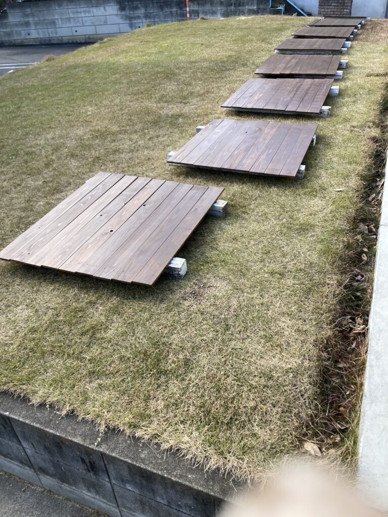 予定していた4,5,6番間の板20枚を貼り終えました。すでに暗くなっています。寒いし。
