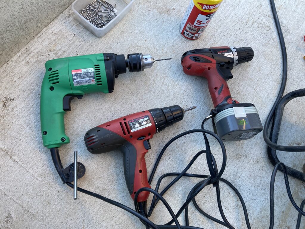 MAKITAのドリルを持ち出してきて、ドリル刃を取り付けて下穴を開けると、3秒も掛からずにズボッと穴が開きます。世界のMAKITA最高!これなら下穴開け作戦が続行できます。