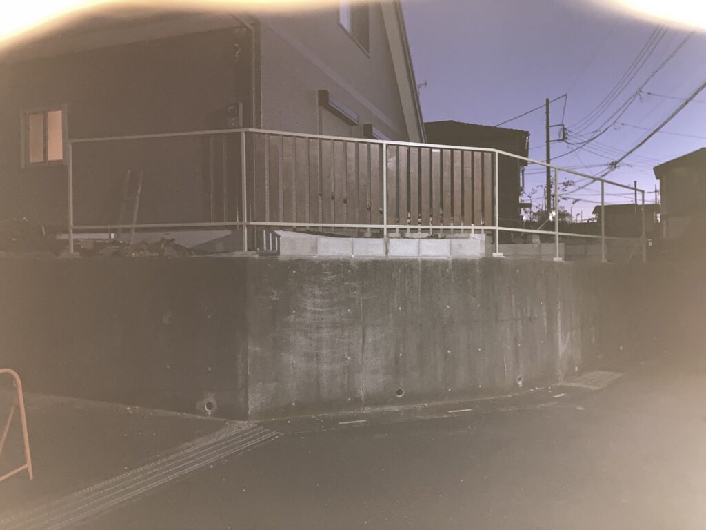 道路側から見た感じです。柱の色が明る過ぎる気もするので明るい時間にまた見てみます。