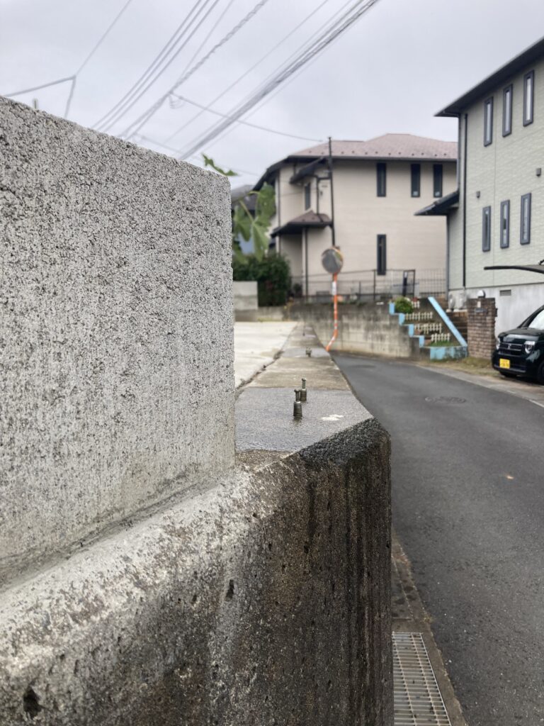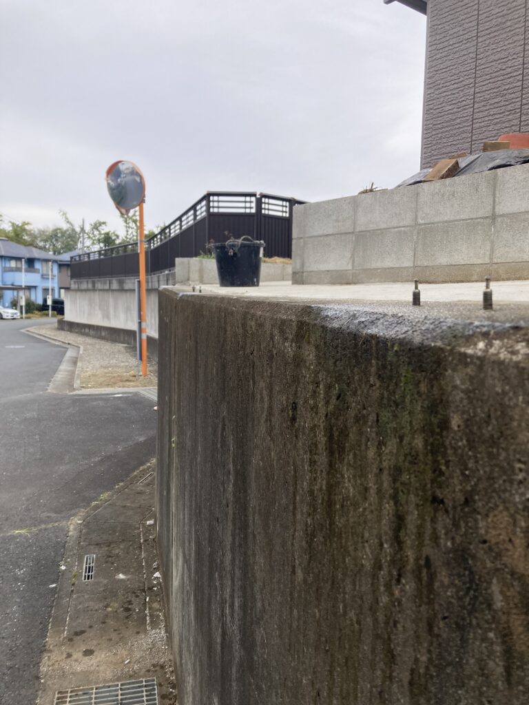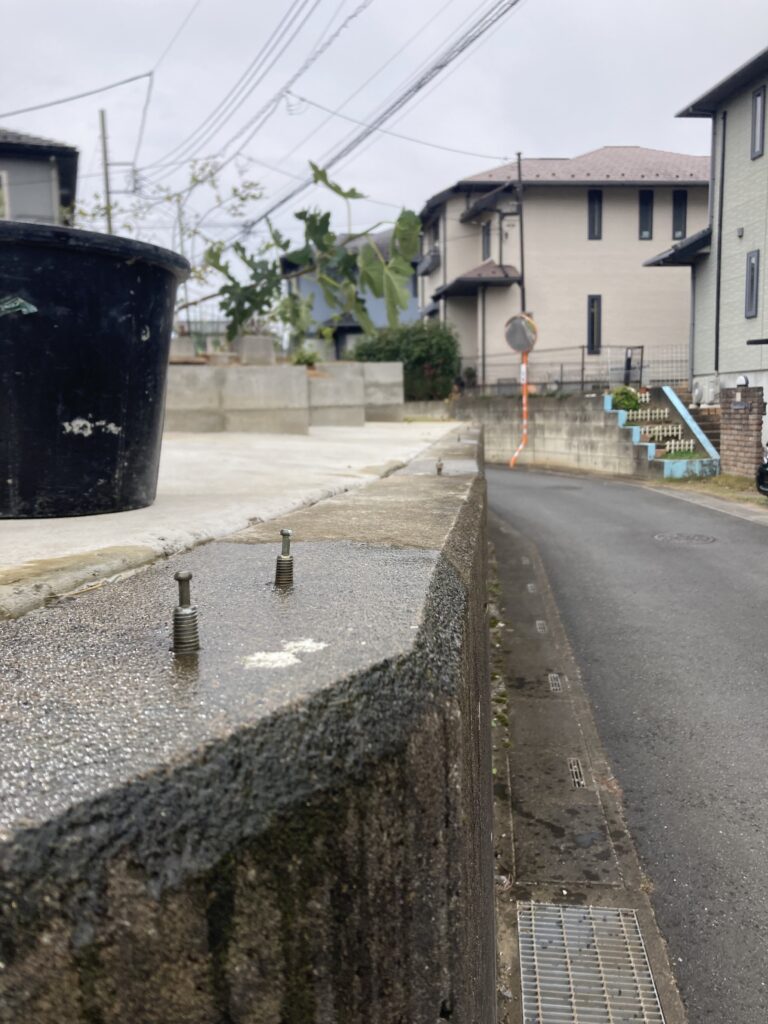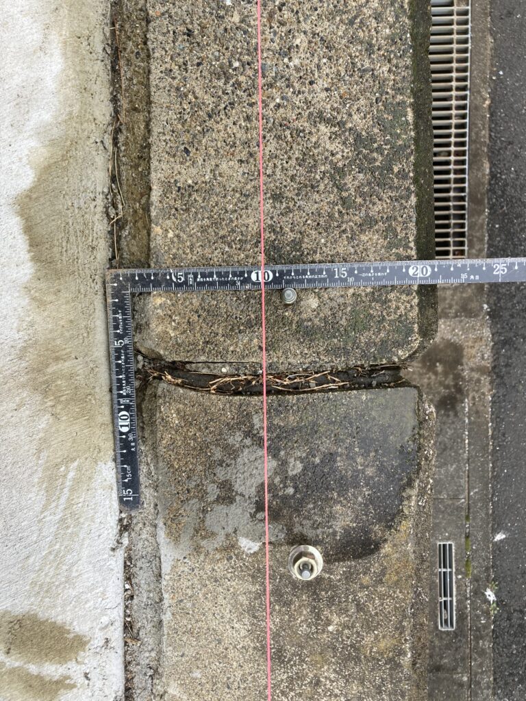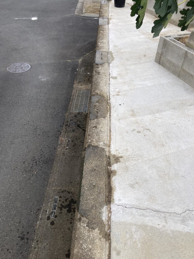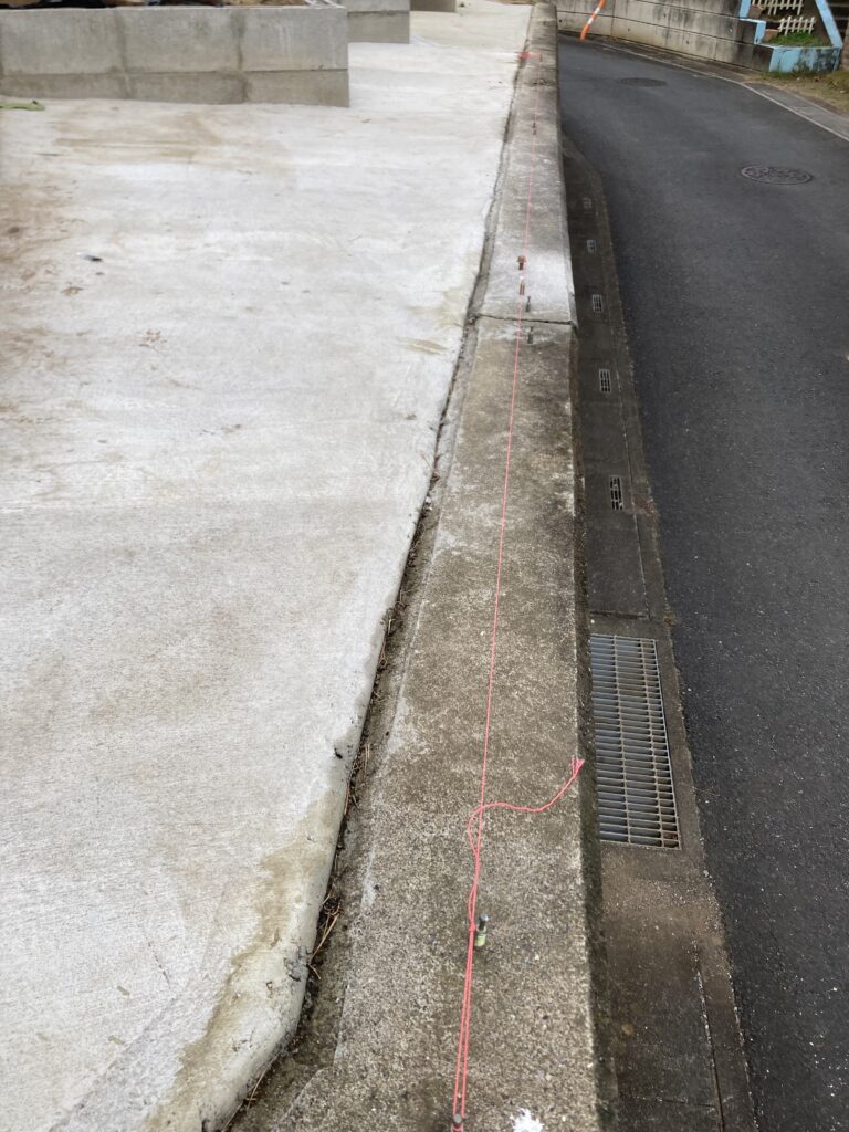 南側から北側を見ると途中から擁壁の高さが上がっています。50㎜くらいはありそうです。